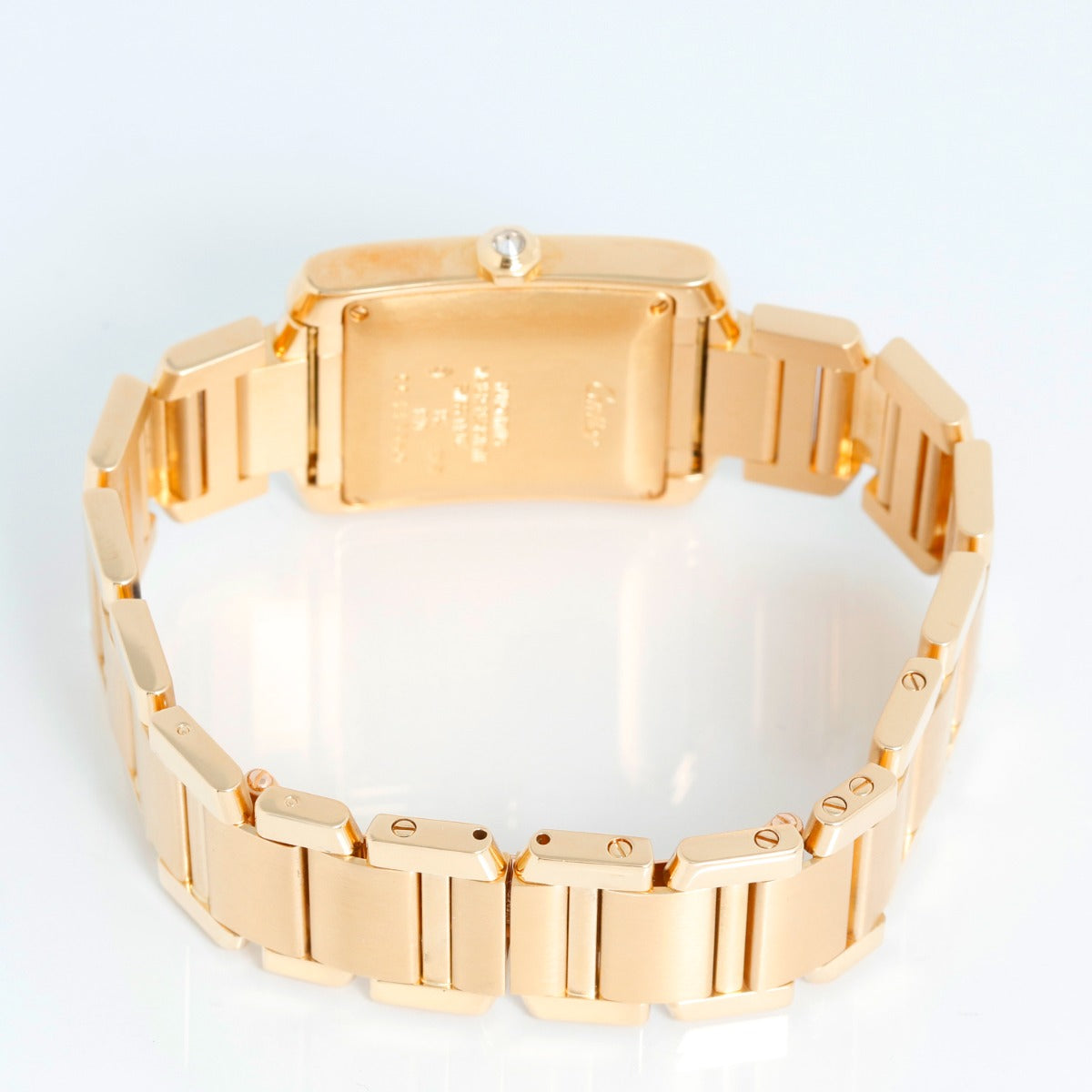 Cartier Tank Francaise Men's/Ladies Large 18k Yellow Gold Automatic Watch with Date WE1010R8 - Automatic winding. 18k yellow gold case with 2 rows of Cartier diamonds on either side (28mm x 32mm). Ivory colored dial with black Roman numerals; date at 6 o'clock. 18k yellow gold Cartier bracelet with deployant clasp. Pre-owned with Cartier box and blank open Cartier papers