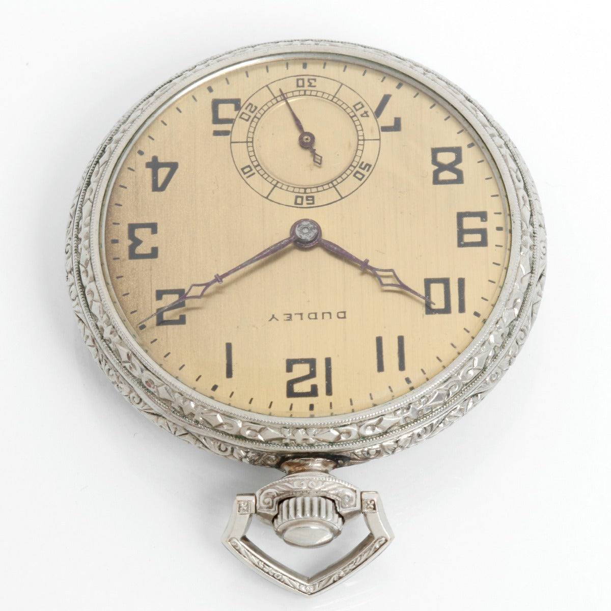 Dudley Masonic Model 3 Pocket Watch - Manual winding . Stainless steel ( 45 mm ) with ornate bezel; Display back seeing various bridges made in the shape of the "working tools of the fraternity. Champagne dial with Arabic numerals. Model 3 series. The series has approximately 2.800 pieces.