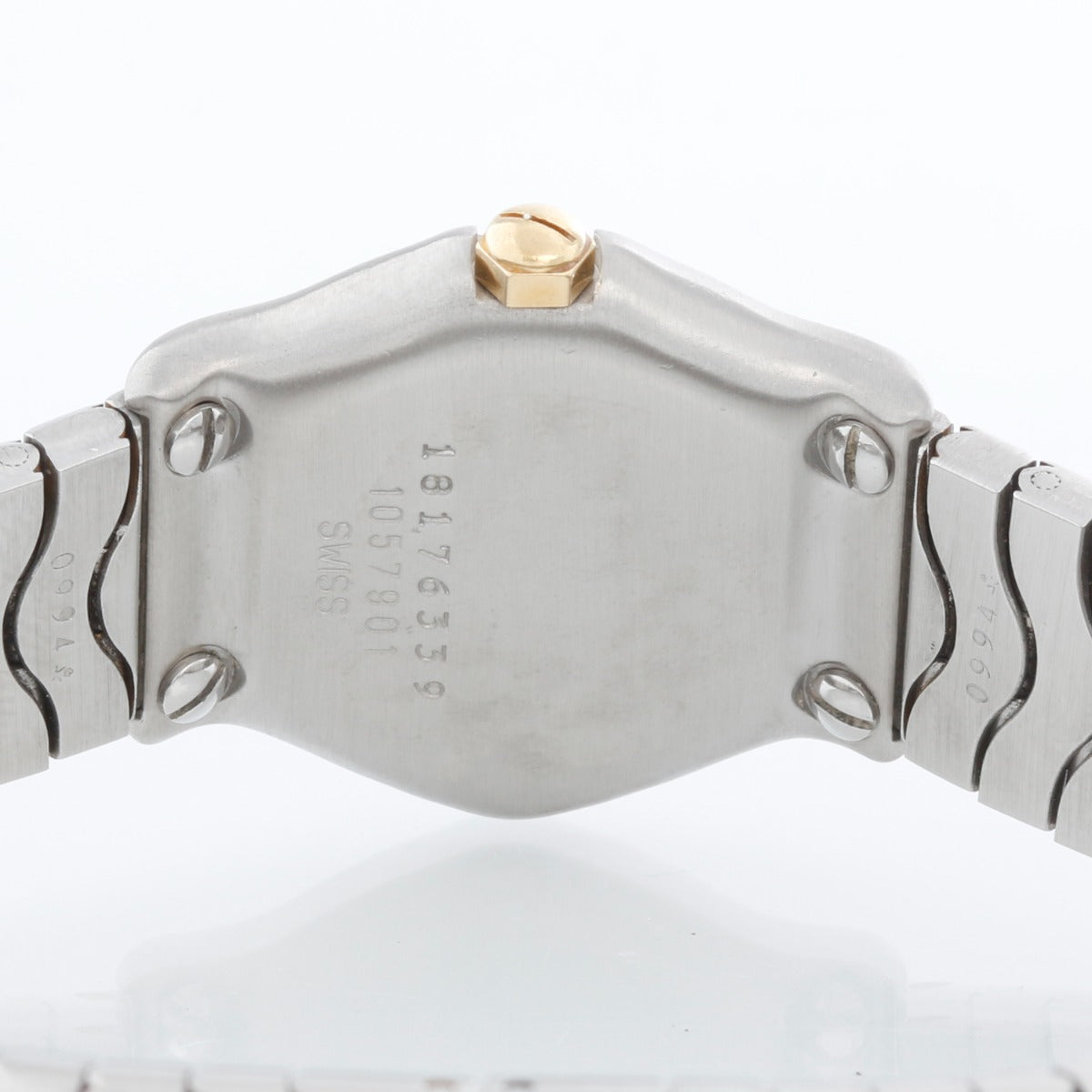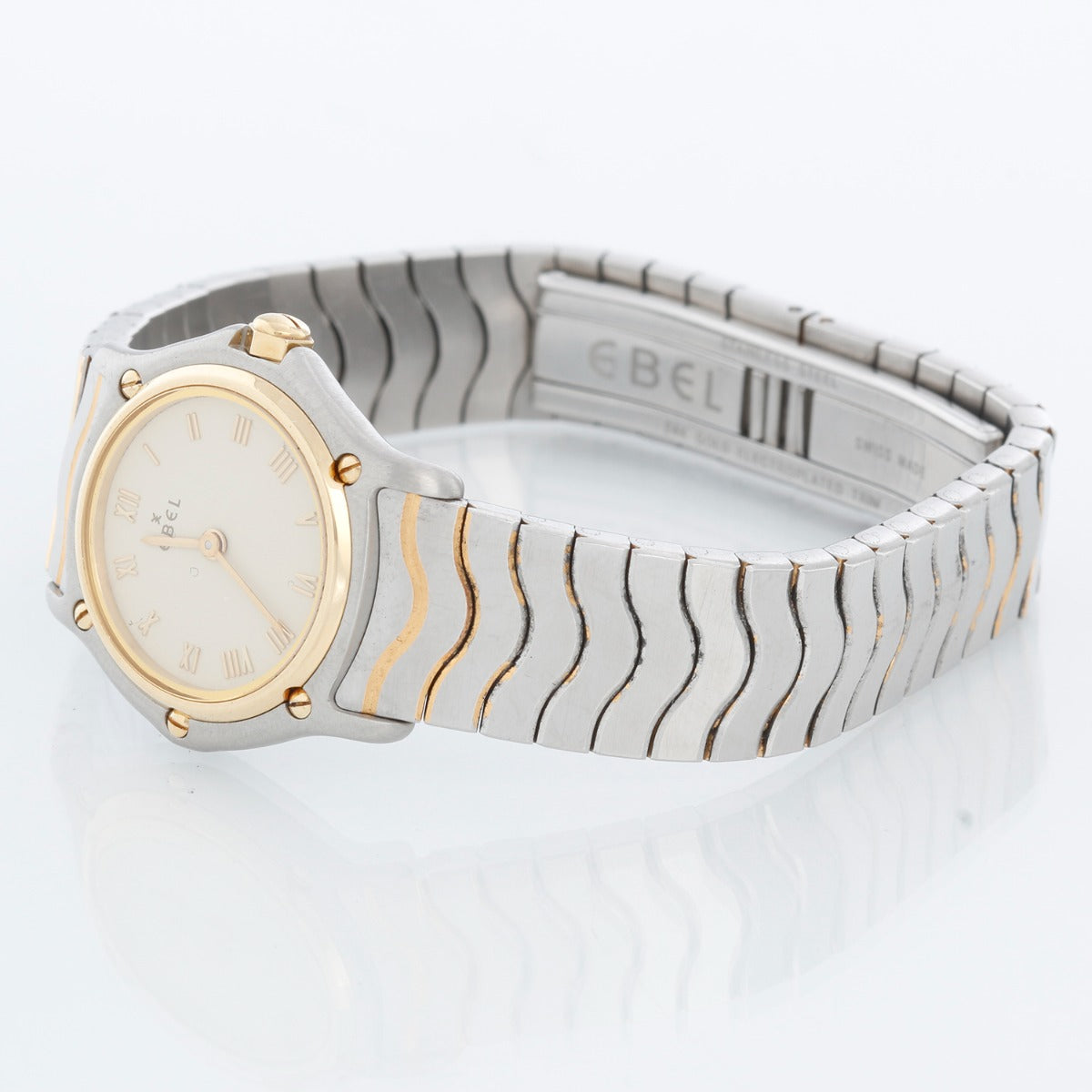 Ladies Ebel Sport Classique Steel & 18k Gold 23mm White Dial Quartz - quartz movement. Stainless steel and 18k yellow gold (23 mm ) . White dial with Roman numerals . Stainless steel and 18k yellow gold bracelet; will fit a 6 inch wrist . With Ebel box, book, and warranty card.
