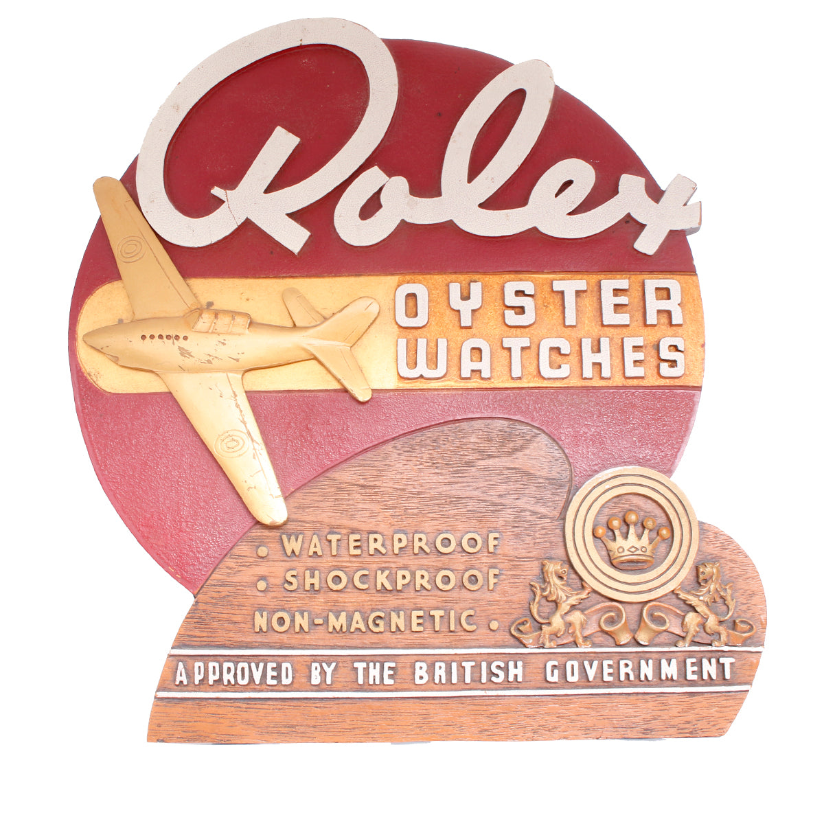 Extremely Rare 1940's Rolex Dealer Counter Display. Rolex Oyster Watches Display. Made from wood; 30 in. at its highest and 10 1/4 in. at its widest. Circa 1940's; Displays from this era are almost non existent.