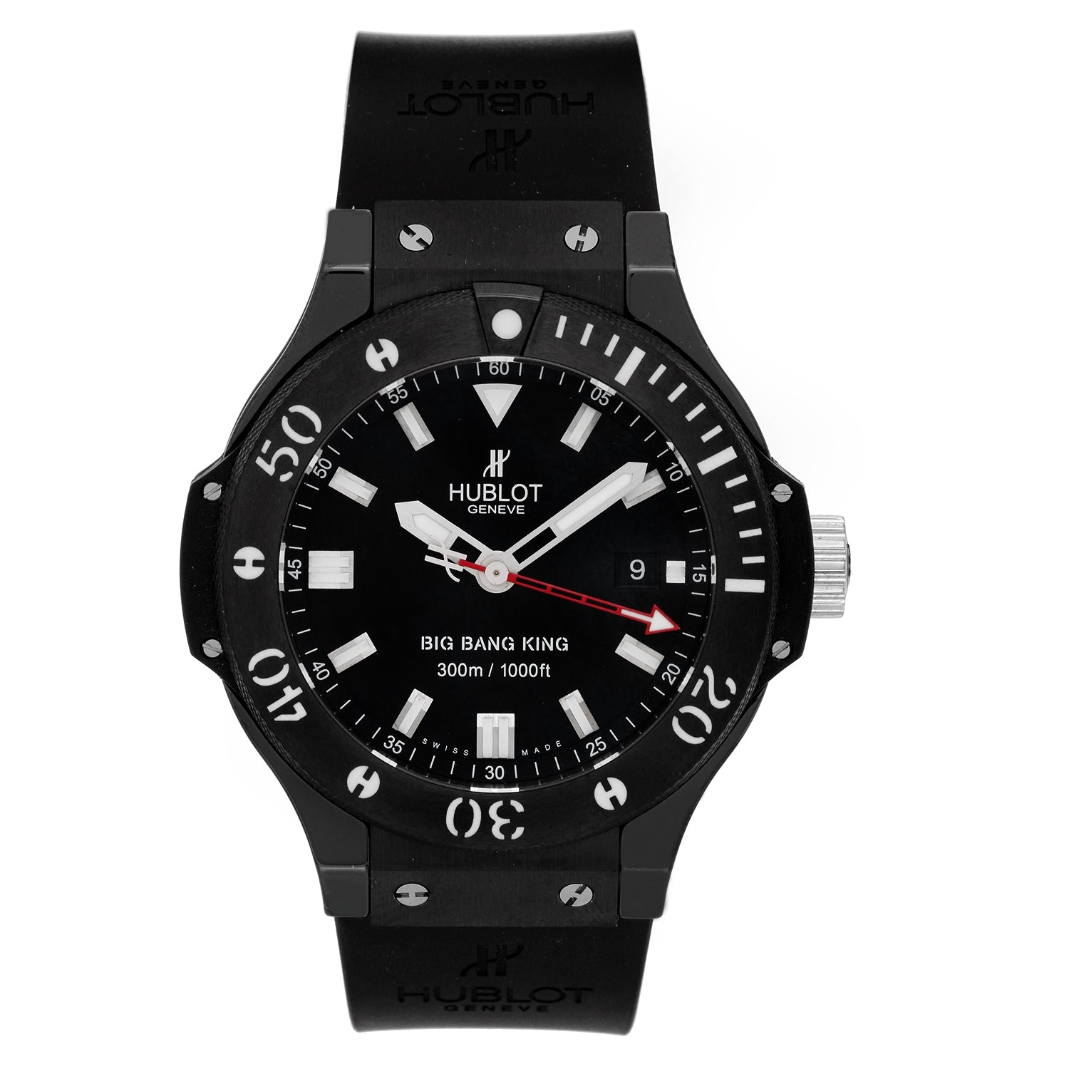 Hublot Big Bang King Ceramic Men's Watch 312.CM.1120.RX - Automatic. Black ceramic and Stainless Steel case with Ceramic Bezel ( 44 mm). Black dial with luminous hour markers. Black rubber strap band with black ceramic Stainless Steel Hublot deployant clasp. Pre-owned with Hublot box and papers