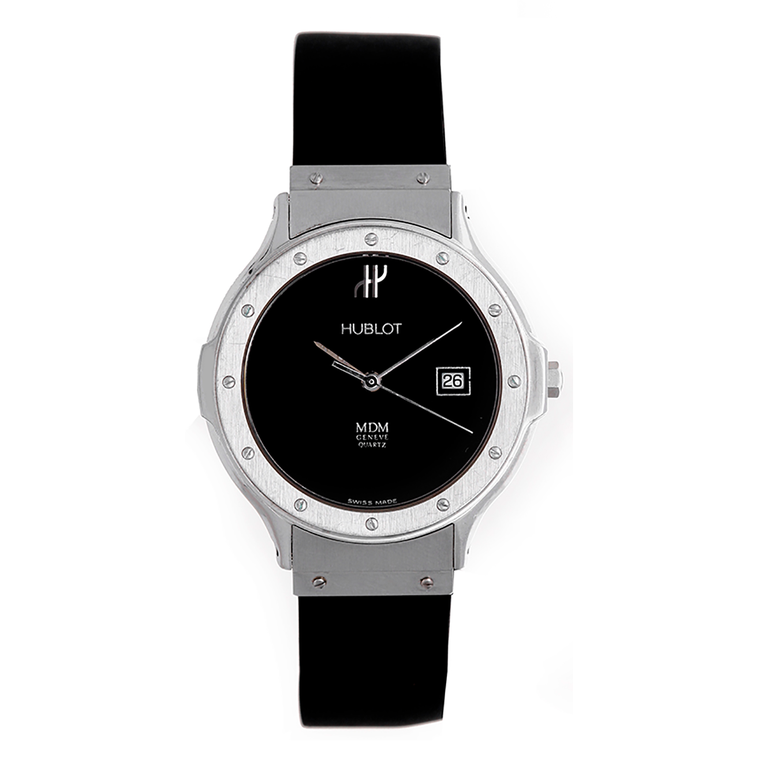 Hublot Classic Stainless Steel Midsize 31mm Quartz Ladies Watch 1405.NE10.1 - Quartz. Stainless steel case (31mm diameter). Black dial. Black rubber strap band with stainless steel deployant clasp. Pre-owned with custom box.