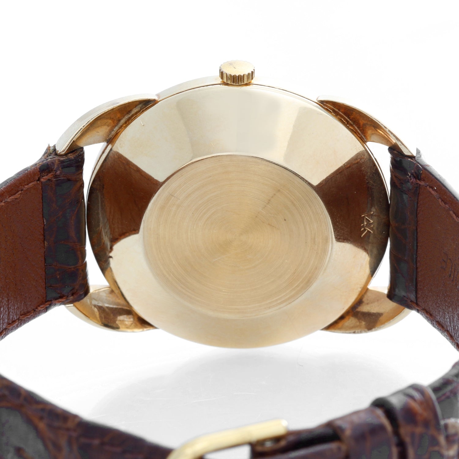 Jaeger Le-Coultre Mystery 14K Yellow Gold Men's Watch - Automatic. 14K Yellow gold ( 35 mm ). Mystery silver dial. Brown alligator strap. Pre-owned with custom box .