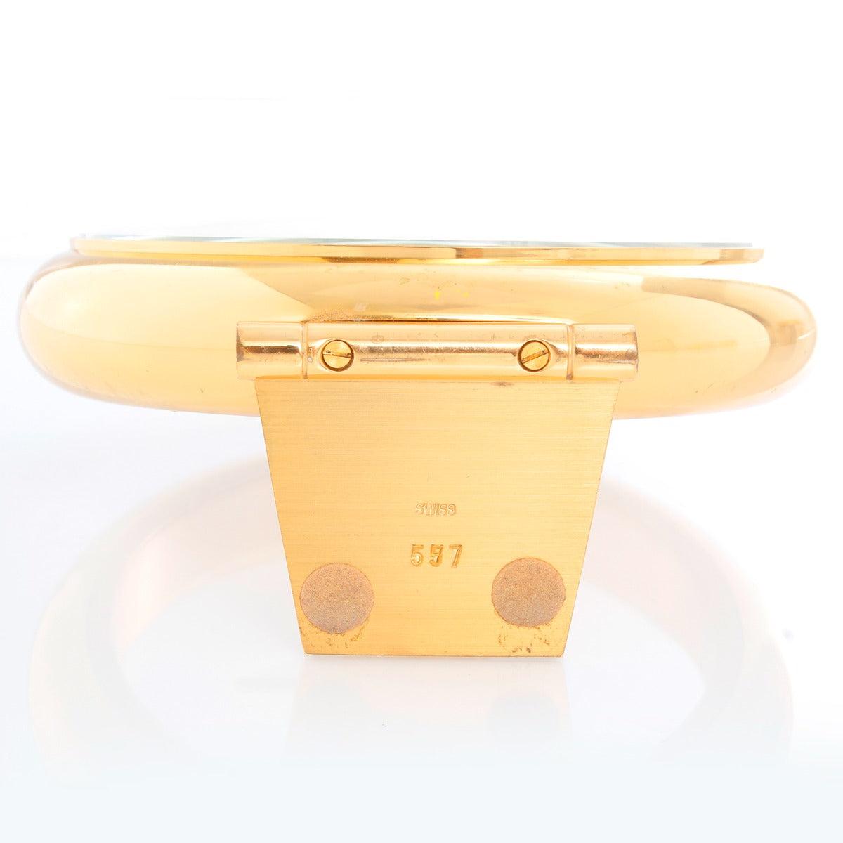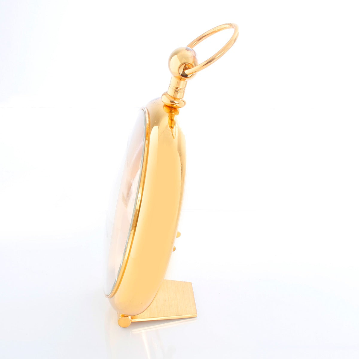 Jaeger-LeCoultre Baguette Skeleton Clock " Pocket Watch" Ref 557 - Manual. Gilt -Steel ( 5 inches ) . Skeleton baguette movement . 16-jewel movement with a manual winding mechanism has an 8-day power reserve. Movement and glass plate are signed JLC. Height 18 cm. Weight 935 grams. Circa 1970's.