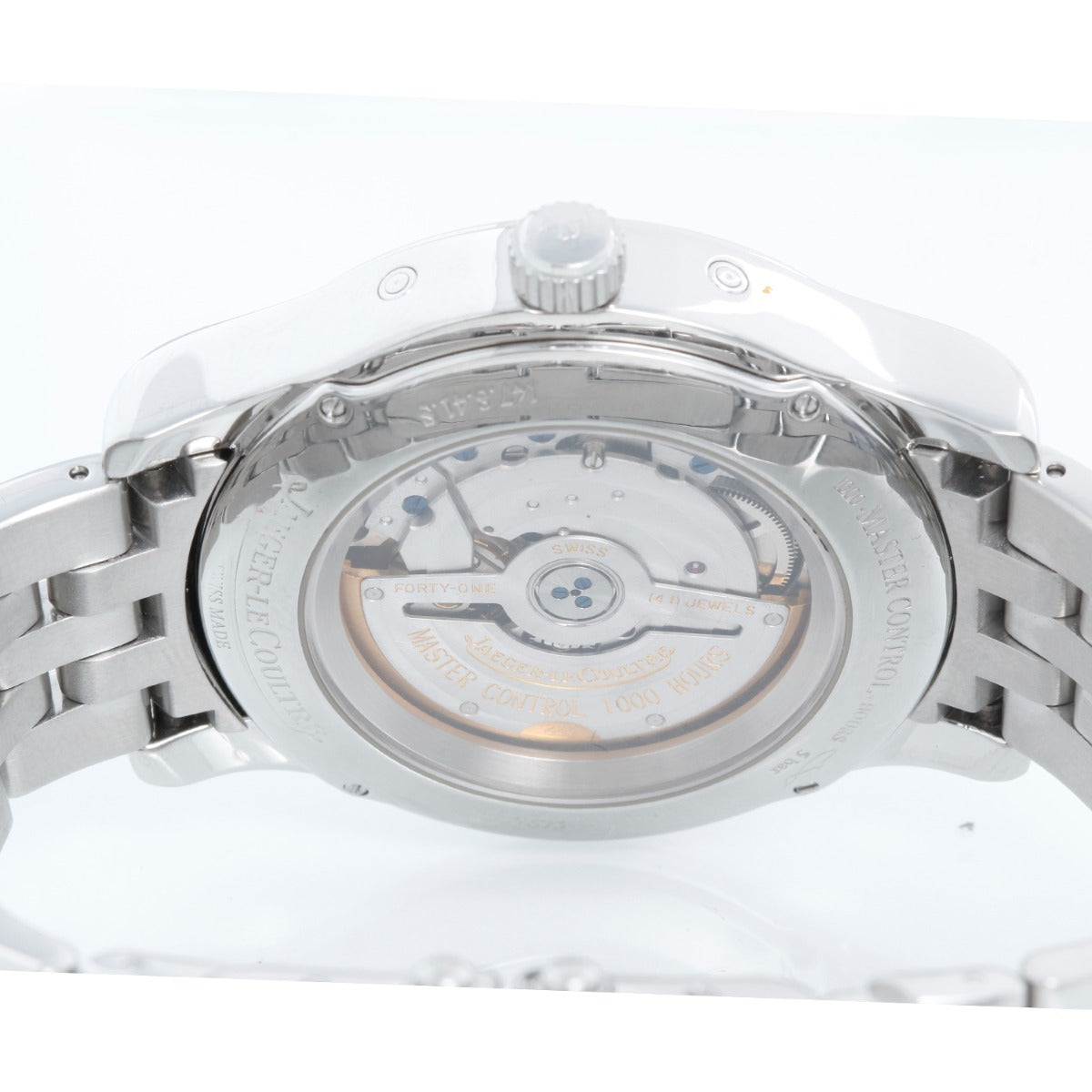 Jaeger-LeCoultre Master Control Calendar Men's Watch Q151812A Q151842A - Automatic winding. Stainless steel case (40mm diameter). Silver dial with calendar feature. Stainless steel bracelet; will fit a 7 1/2 inch wrist. Pre-owned with Jaeger Travel box and master book.