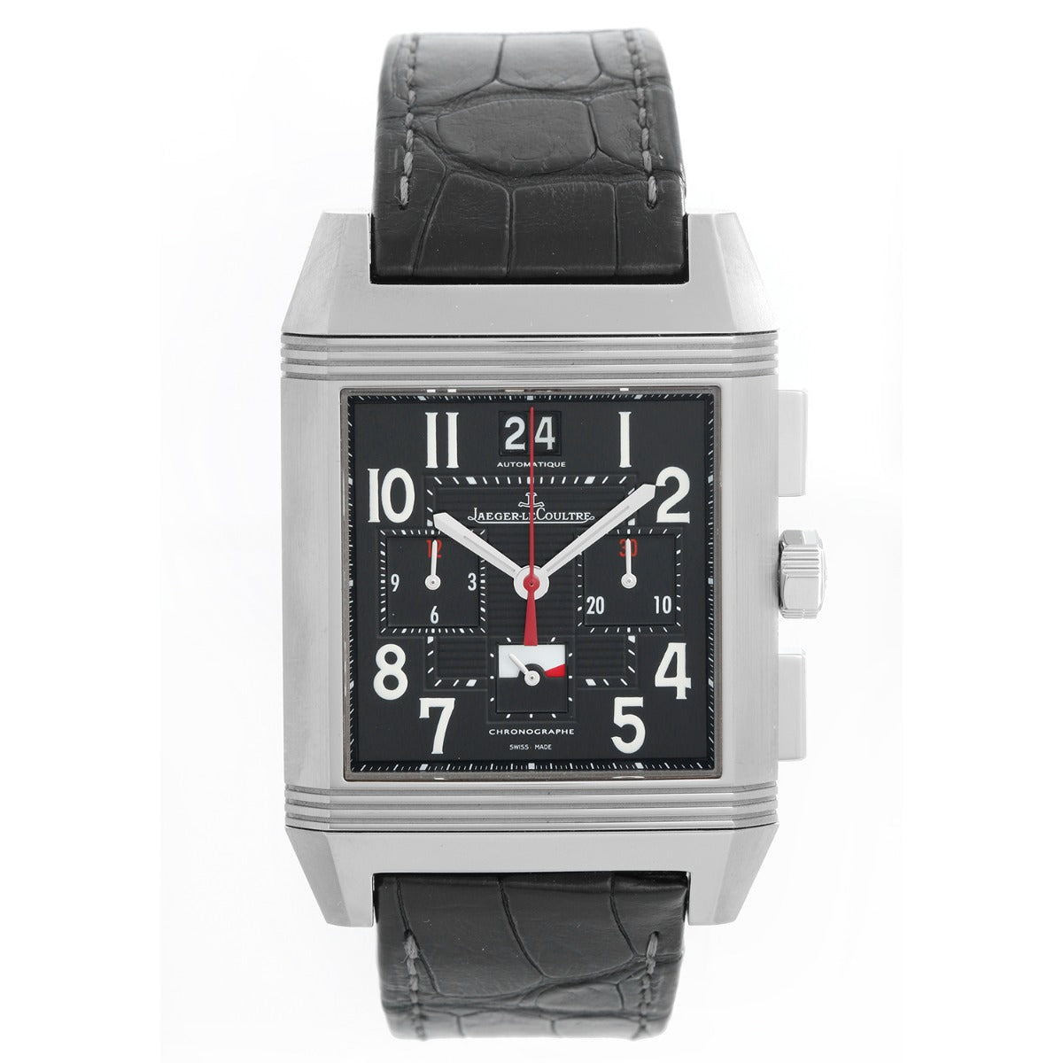 Jaeger-LeCoultre Reverso Squadra World Time Watch 231.T.50 - Automatic movement. Titanium case ( 36 x 52 mm ). Black dial with silver-toned hands and Arabic hour markers. Ceramic and titanium case with a black rubber strap and deployant buckle . Pre-owned with custom box.