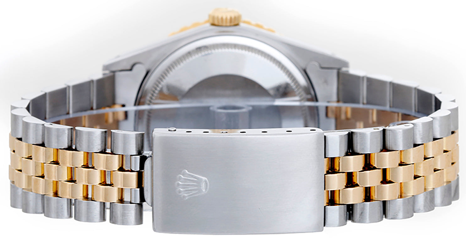 Rolex Turnograph Model 16263 - Men's stainless steel and 18k yellow gold wristwatch with date display (36mm diameter). Sapphire crystal. 18k yellow gold Thunderbird bezel. Champagne dial with raised stick markers. Stainless steel and 18k yellow gold Jubilee bracelet. 31 jewel superlative officially certified chronometer movement. Pre-owned with custom box