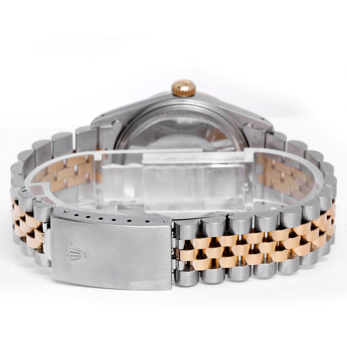 Men's Rolex Datejust 2-Tone Watch 16013 - Automatic winding, 27 jewels, Quickset, acrylic crystal. Stainless steel and 18k yellow gold fluted bezel (36mm diameter). Blue vignette factory diamond dial. Stainless steel and 18k yellow gold Jubilee bracelet. Pre-owned with custom box