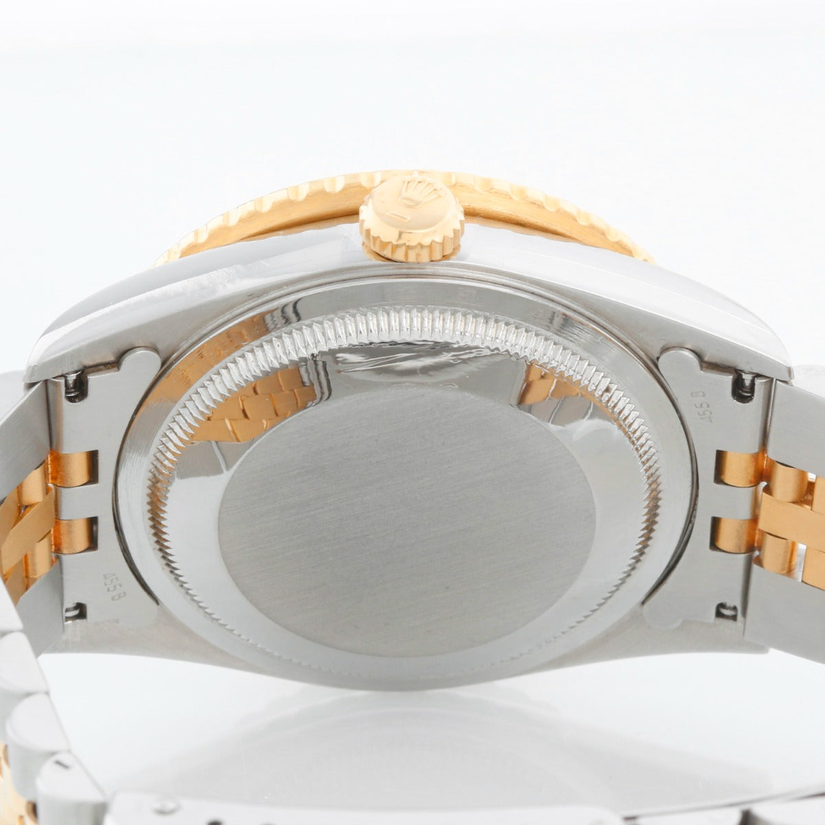 Rolex Turnograph Men's 2-Tone Watch 16263 - Automatic winding, 31 jewels, Quickset, sapphire crystal. Stainless steel case with 18k yellow gold bezel (36mm diameter). Black Pyramid dial . Stainless steel and 18k yellow gold Jubilee bracelet. Pre-owned with Rolex Travel box.