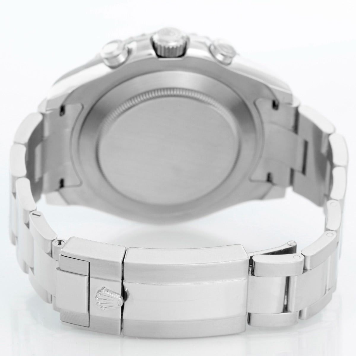 Men's Rolex Yacht-Master II Regatta Watch Stainless Steel Blue Bezel 116680 - Automatic winding, Regatta Chronograph, 31 jewels, sapphire crystal. Stainless steel case with rotatable Ring Command bezel with blue insert (44mm diameter). White dial with luminous style markers; blue rimmed seconds subdial; seconds recorder; regatta count-down chronograph. Stainless steel Oyster bracelet with flip-lock clasp. Pre-owned with Rolex box and books