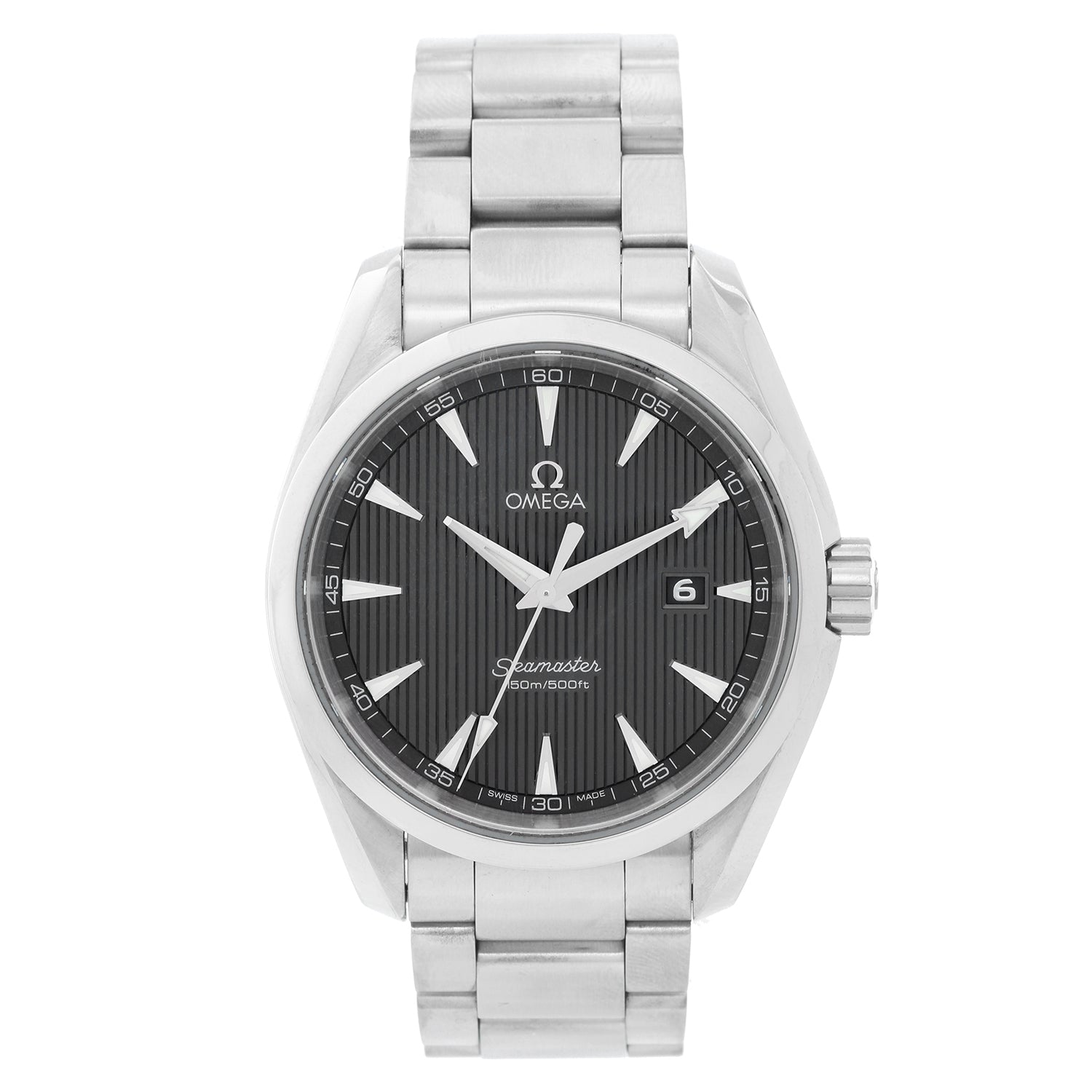 Omega Seamaster Aqua Terra Black Dial Men's Watch 231.10.39.61.06.001 - Quartz. Stainless Steel ( 38 mm ). Grey dial with stick hour markers; Date at 3 o'clock. Stainless steel bracelet with deployant buckle. Pre-owned with Omega box and papers.