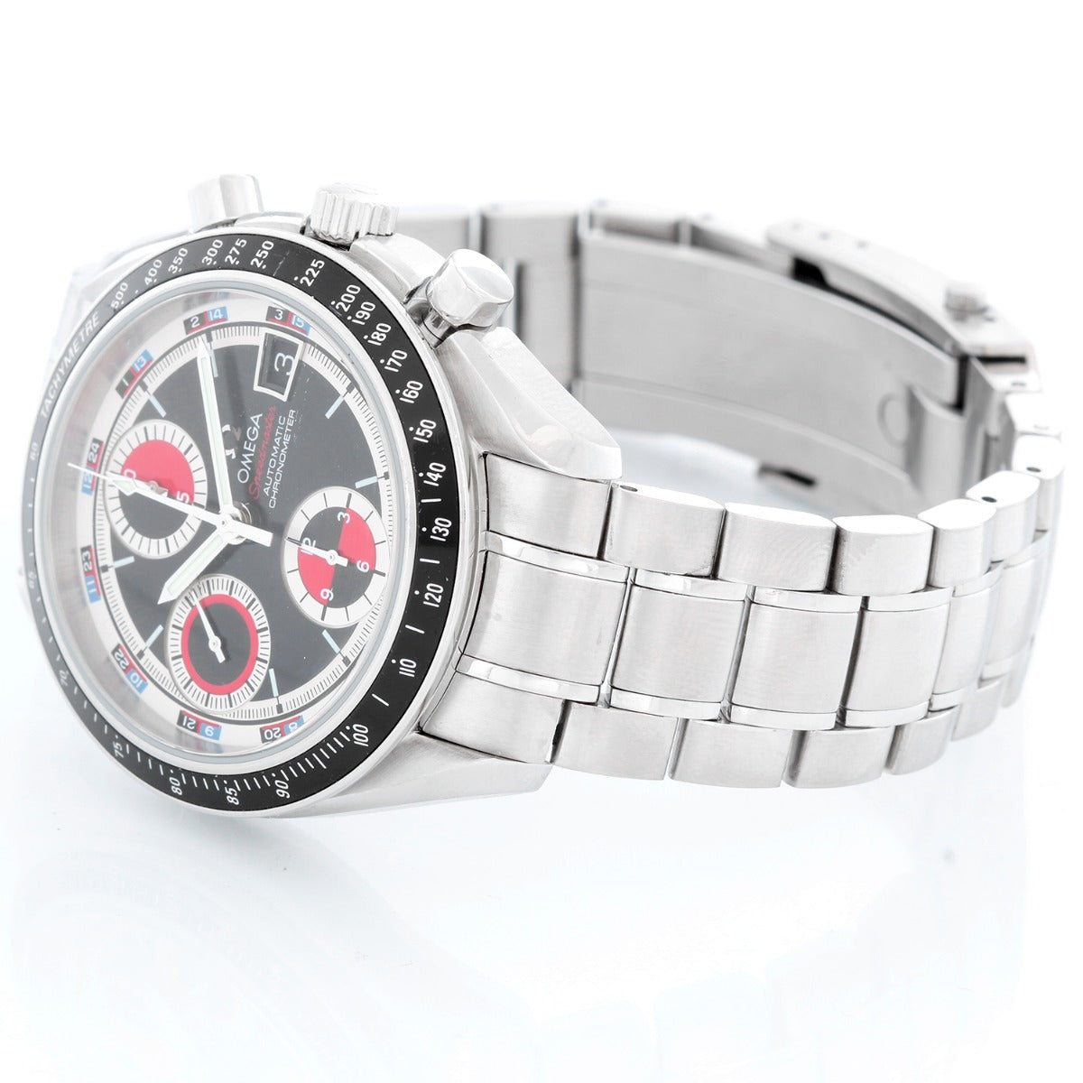 Omega Speedmaster Date 3210.52 Men's Automatic Watch - Automatic. Stainless Steel ( 40 mm ). Casino dial with Chronograph, Date and Tachymeter. Stainless steel bracelet. Will fit up to a 8 inch wrist . Pre-owned with Custom box and warranty card .