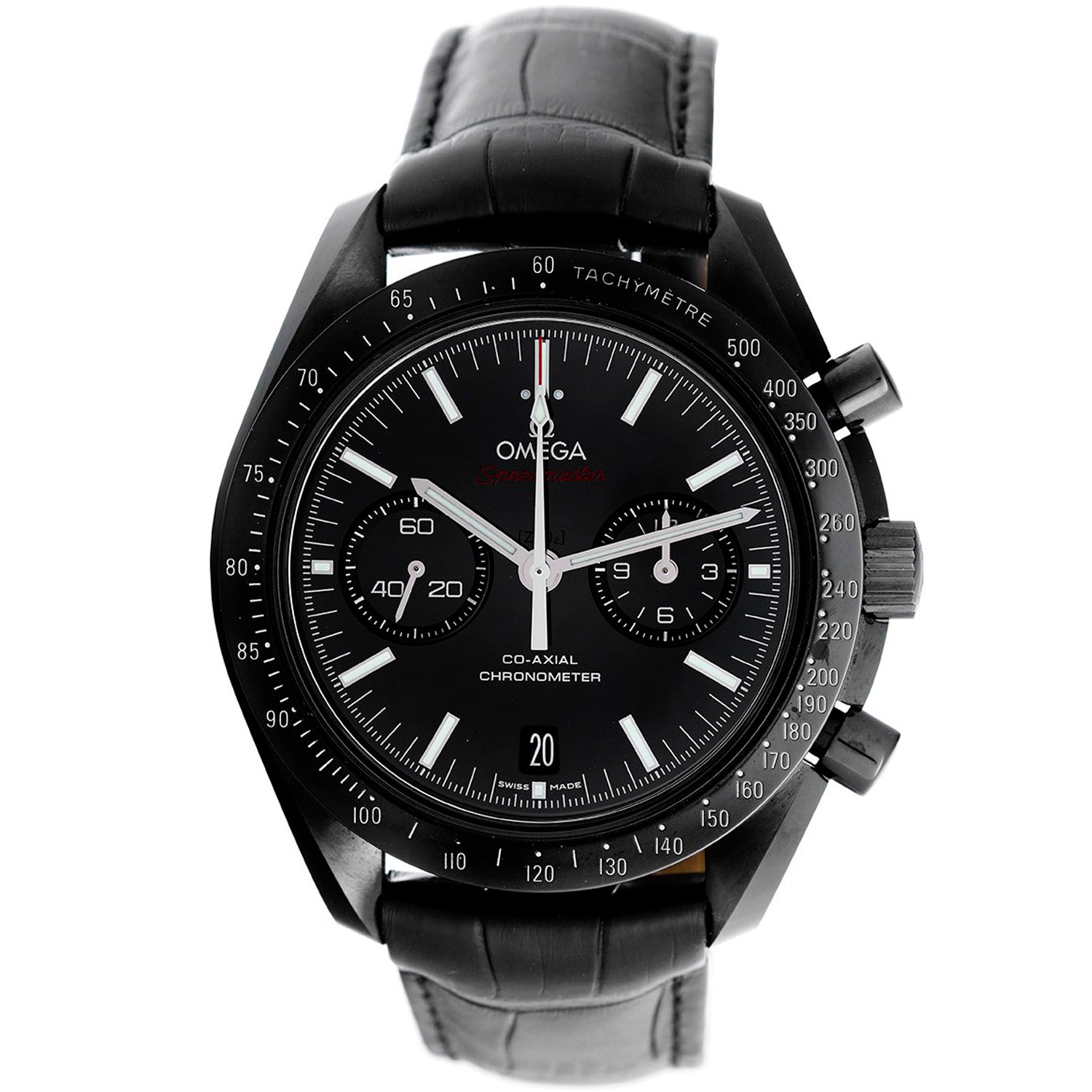 Omega Speedmaster Moonwatch Co-Axial Dark Side of the Moon Men's Watch 311.92.44.51.01.007 - Automatic winding; chronograph. Black ceramic case, bezel and crown; exposition back (44mm diameter). Black zirconium oxide ceramic dial; minutes and seconds recorders; date at 6 o'clock position. Omega black croc strap band and titanium/ceramic deployant clasp. Pre-owned with box and books.