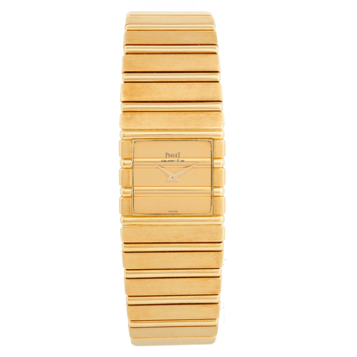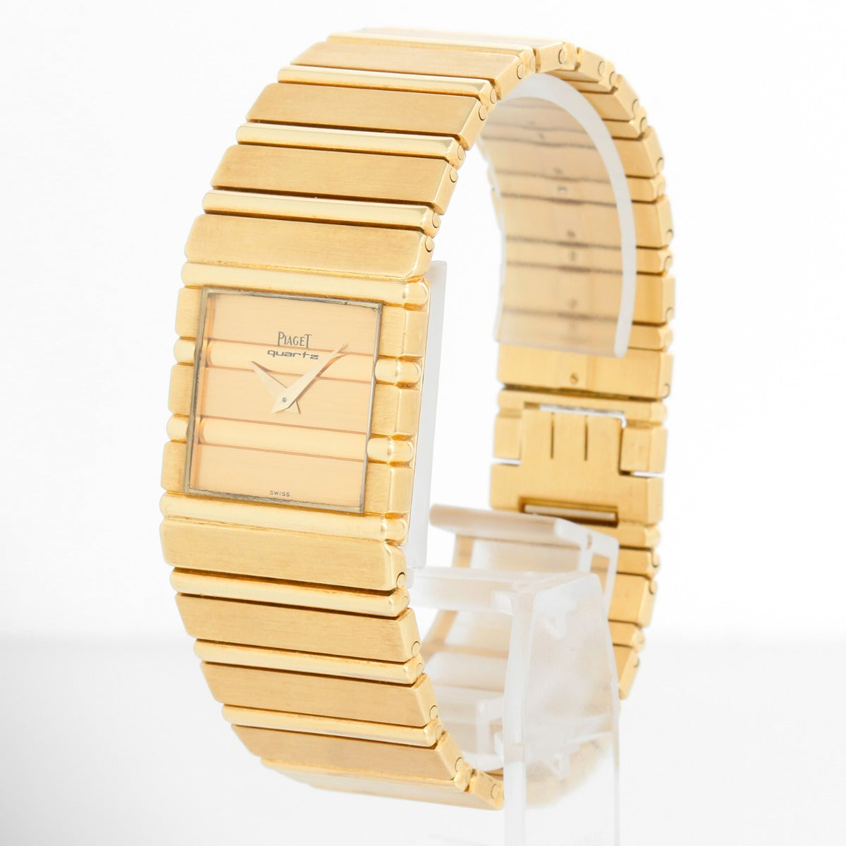 Piaget Polo 18K Yellow Gold Men's Watch 7131 C701 - Quartz. 18K Yellow Gold ( 25 x 25 mm ). Gold dial with round hour markers. 18K Yellow Gold bracelet; will fit a 6 3/4 inch wrist . Pre-owned with Piaget travel box.