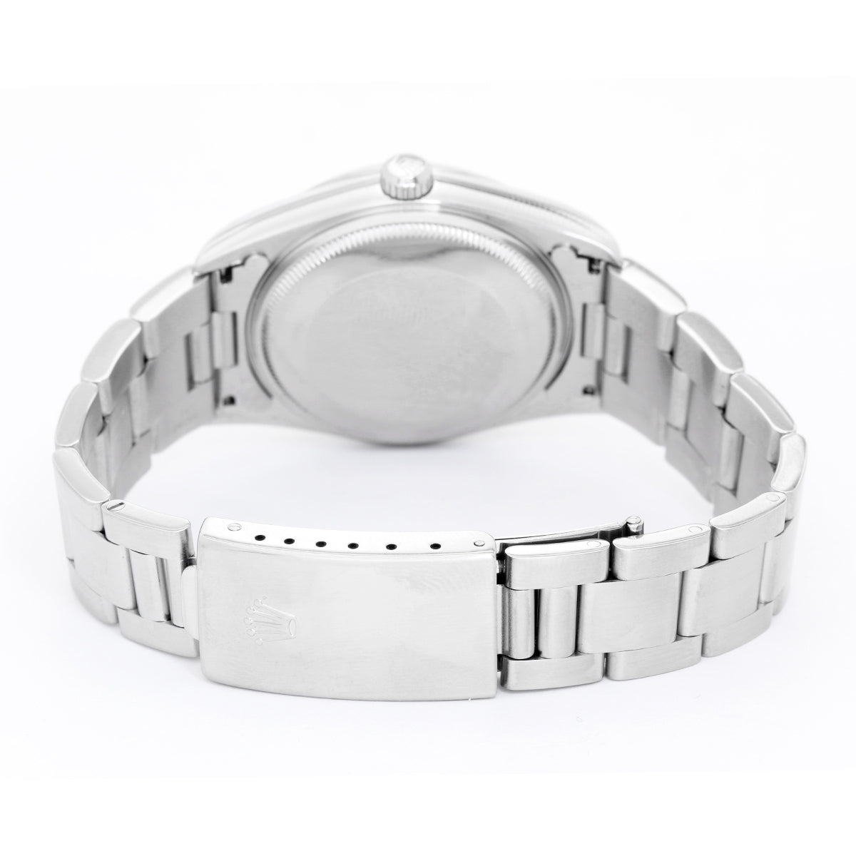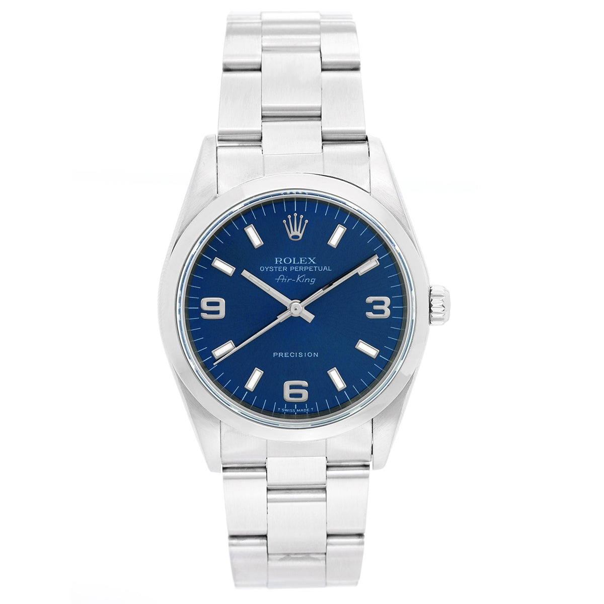Rolex Air-King Men's Stainless Steel Watch Blue Dial 14000 - Automatic winding, 27 jewels, no-date, sapphire crystal. Stainless steel case with smooth bezel (34mm diameter). Blue dial with luminous style markers and Arabic numerals. Stainless steel Oyster bracelet. Pre-owned with custom box .