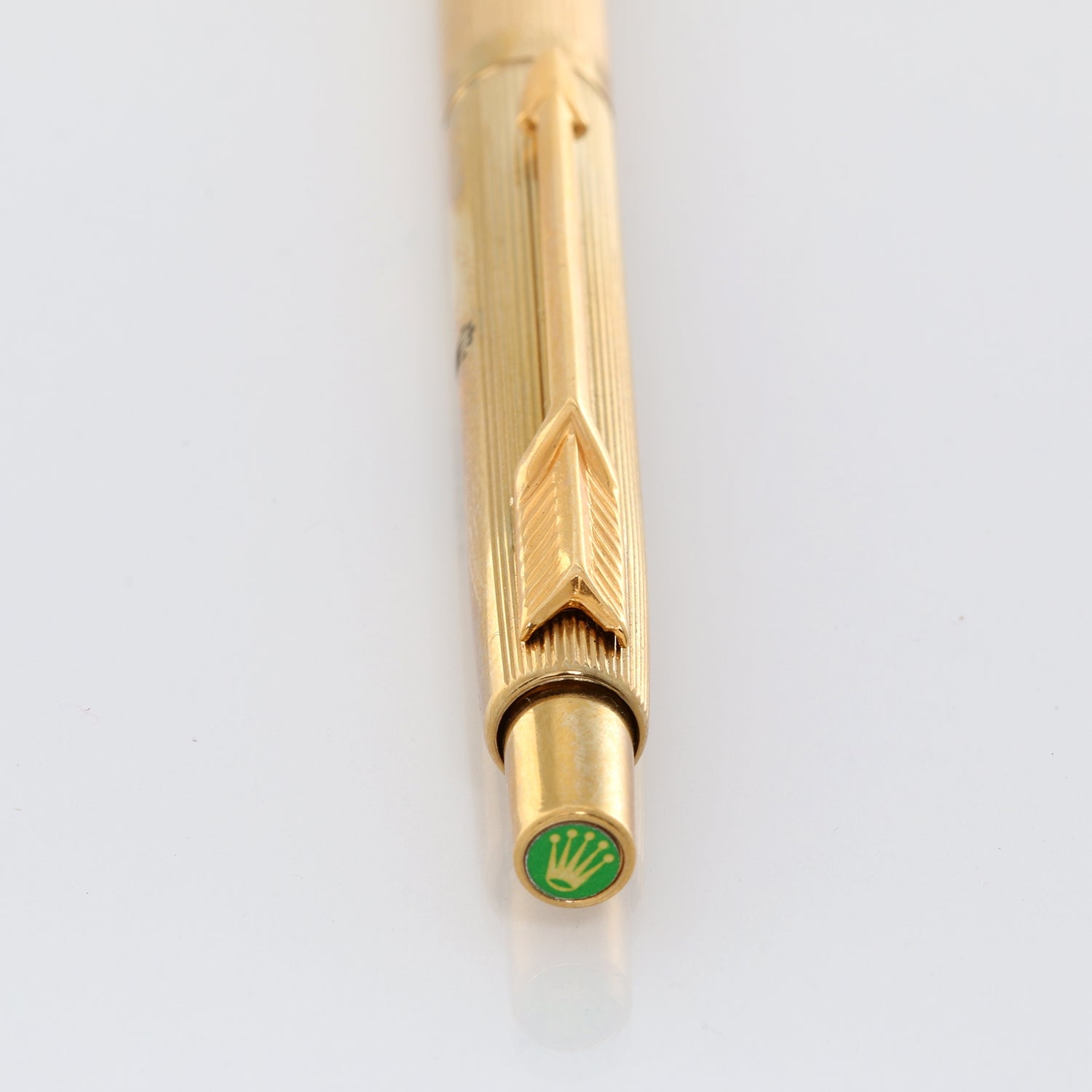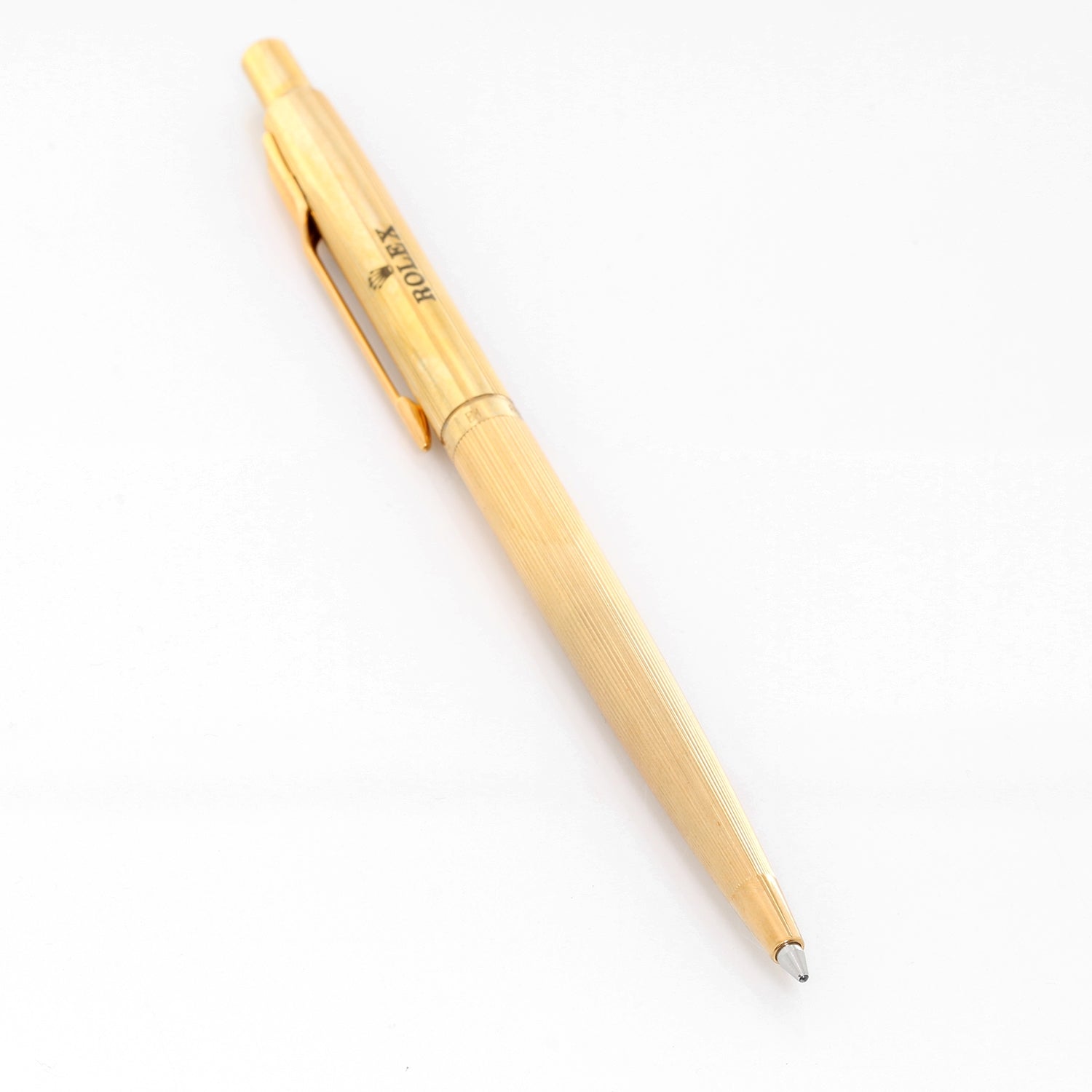 Rolex Ball Point Pen with Blue Ink - . New old stock. Blue ink. Total weight 15.5 grams Visually appealing straight lines with Rolex crown. Engraved with Rolex logo. Rolex green crown on clicker.