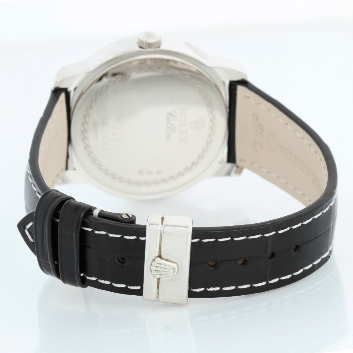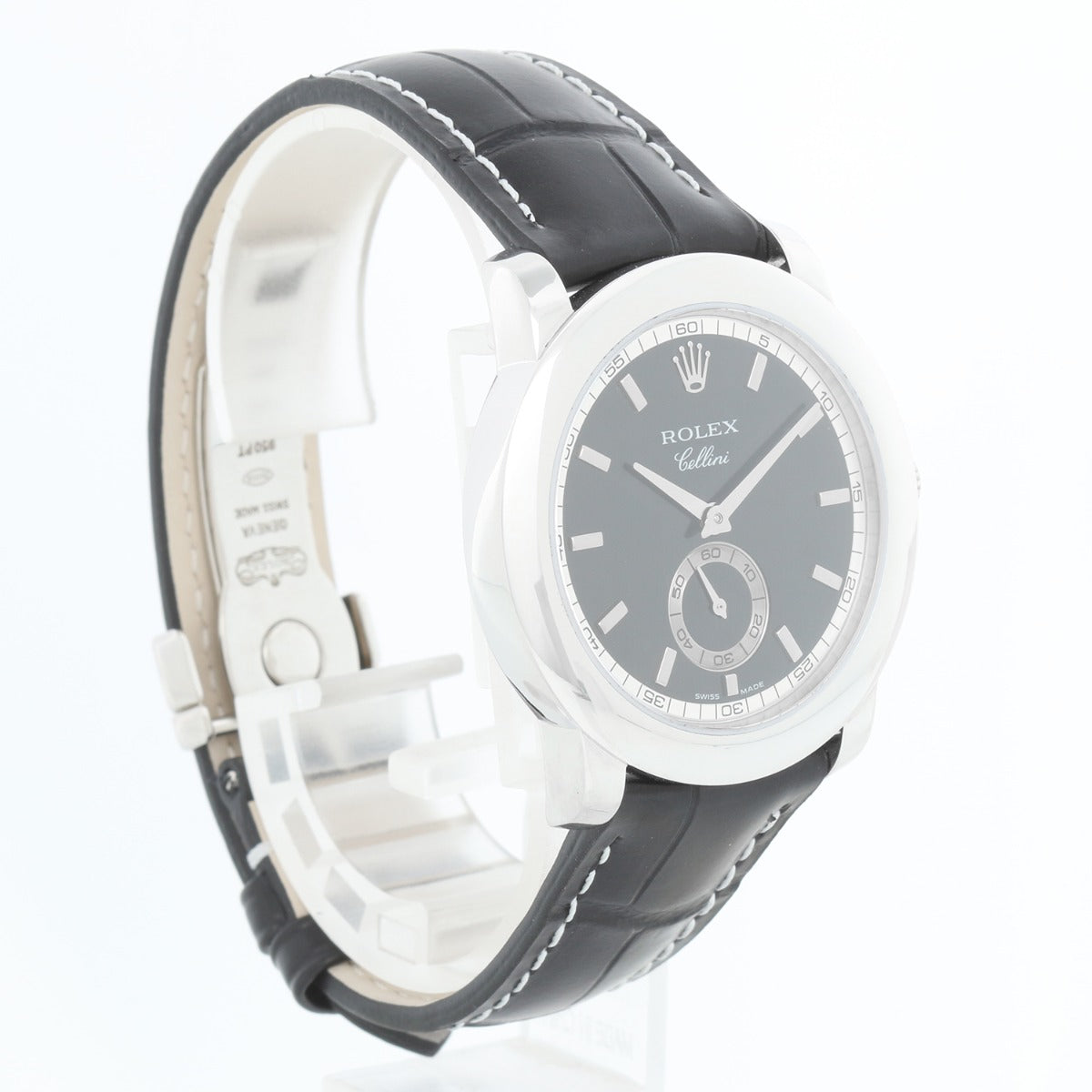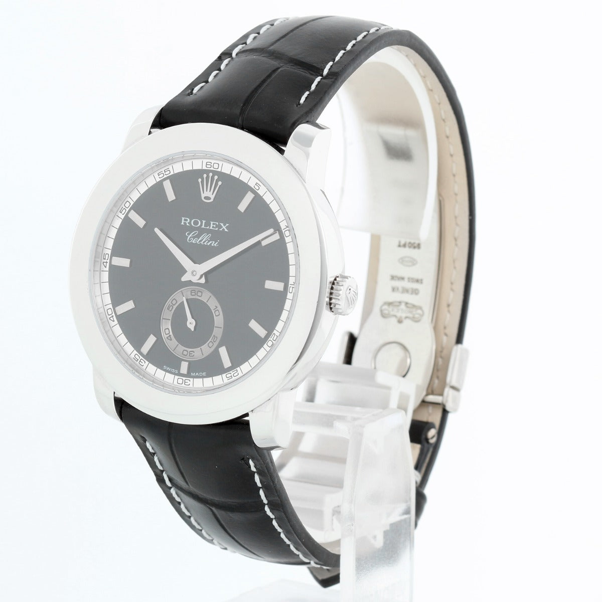 Rolex Cellini Cellinium Men's Platinum Watch with Dial 5241/6 - Manual winding. Platinum case (38mm diameter). Black dial with baton markers; seconds subdial at 6 o'clock. New Rolex Black croc strap band with platinum Rolex deployant clasp. Pre-owned with Rolex box and books.