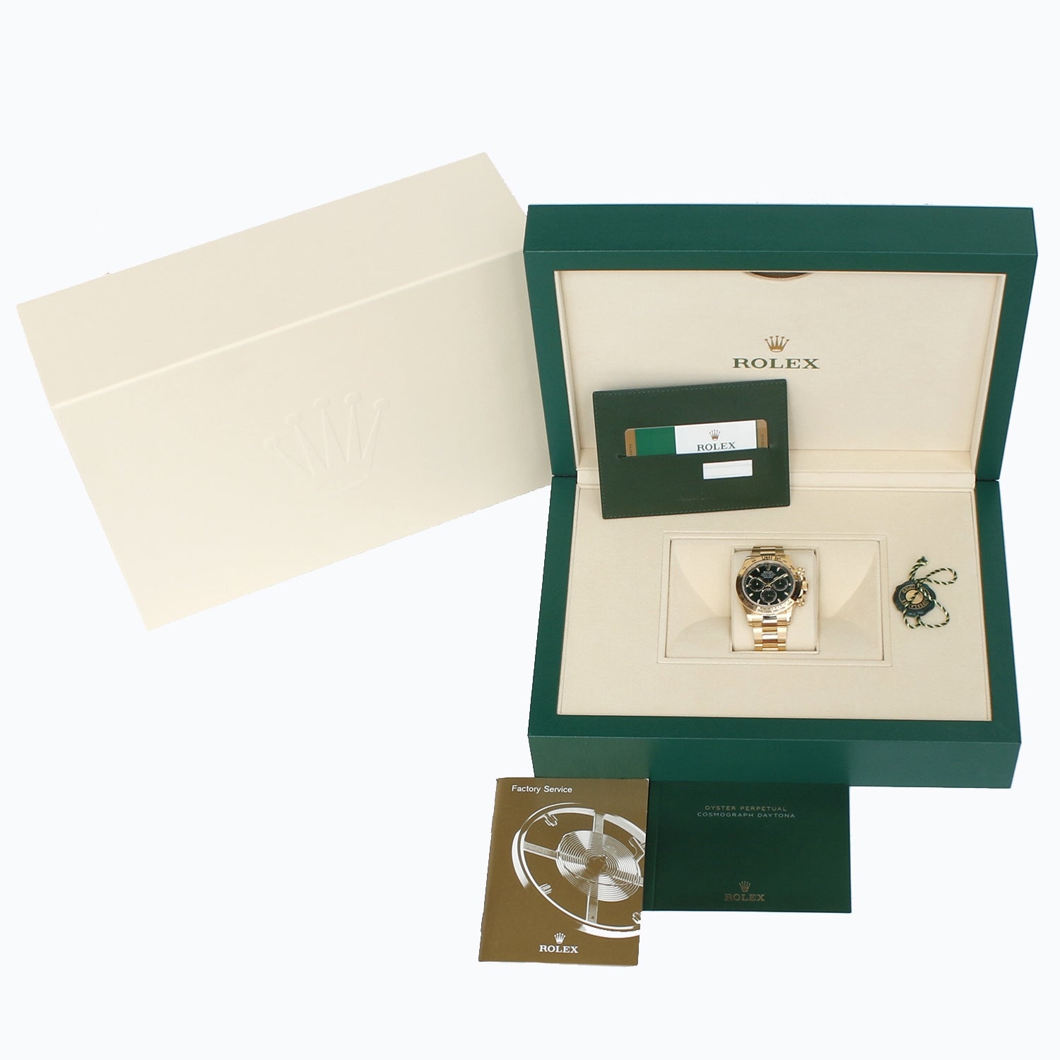 Rolex Cosmograph Daytona Men's Watch 116508 - Automatic winding, chronograph, 44 jewels, sapphire crystal. 18k yellow gold case and bezel . Green dial with luminous-type markers and subdials. 18k yellow gold Oyster bracelet with flip-lock clasp. Pre-owned with Rolex box and card