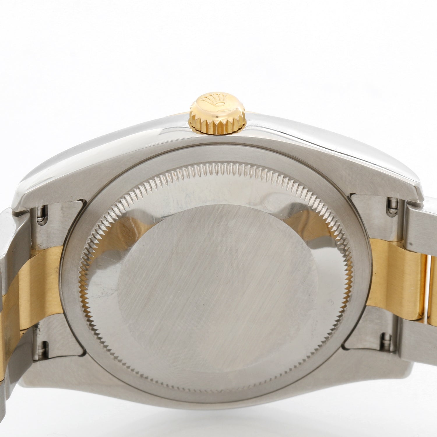 Rolex Men's Datejust, 116203- Men's automatic winding wristwatch. Stainless steel case with 18k yellow gold smooth bezel. White dial with index markers. Stainless steel and 18k yellow gold Oyster bracelet. Pre-owned with Rolex box and books.