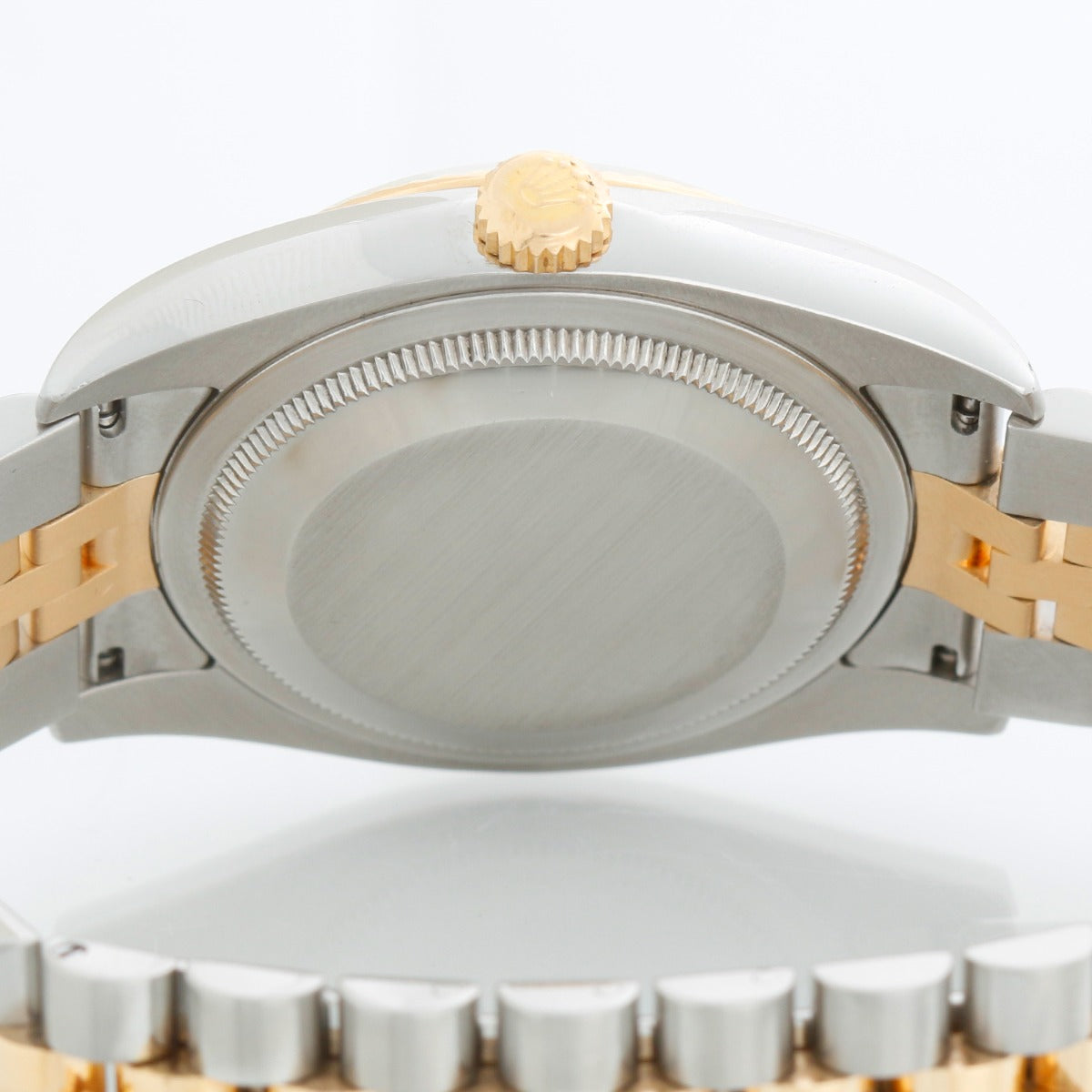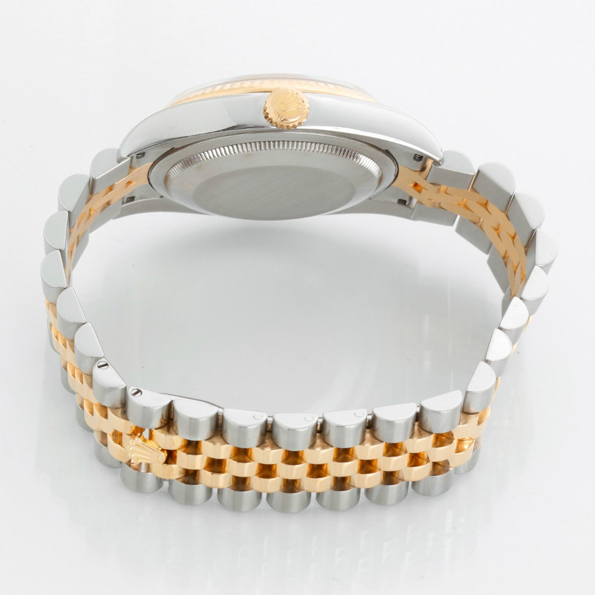 Rolex Datejust Men's 2-Tone Watch 116233 - Automatic winding, 31 jewels, Quickset, sapphire crystal. Stainless steel case with 18k yellow gold fluted bezel . Champagne dial with index markers. Stainless steel and 18k yellow gold Jubilee bracelet. Pre-owned with Rolex box