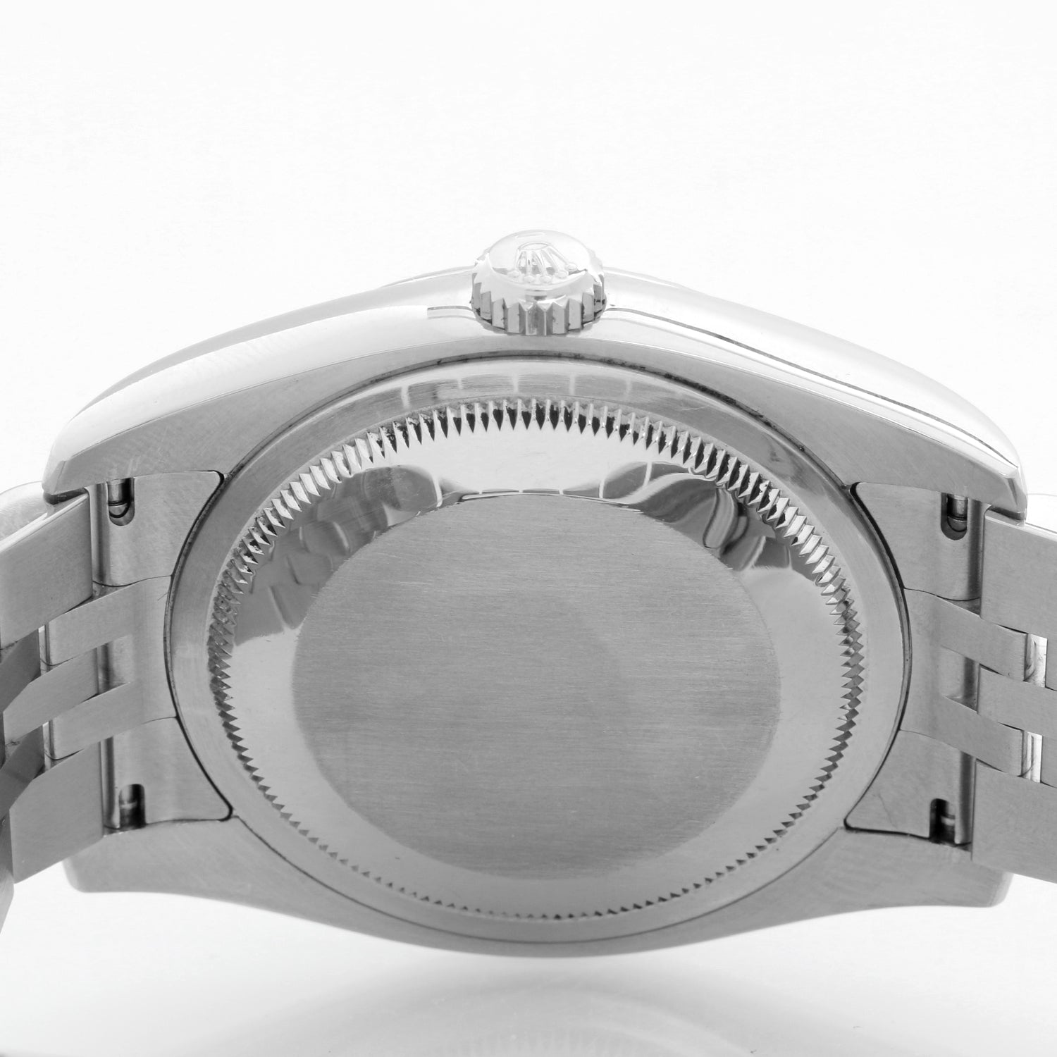 Rolex Datejust Men's Stainless Steel Watch 116234 - Automatic winding, 31 jewels, Quickset, sapphire crystal. Stainless steel case with 18k white gold fluted bezel . Black dial with stick hour markers. Stainless steel Jubilee bracelet. Pre-owned with custom box