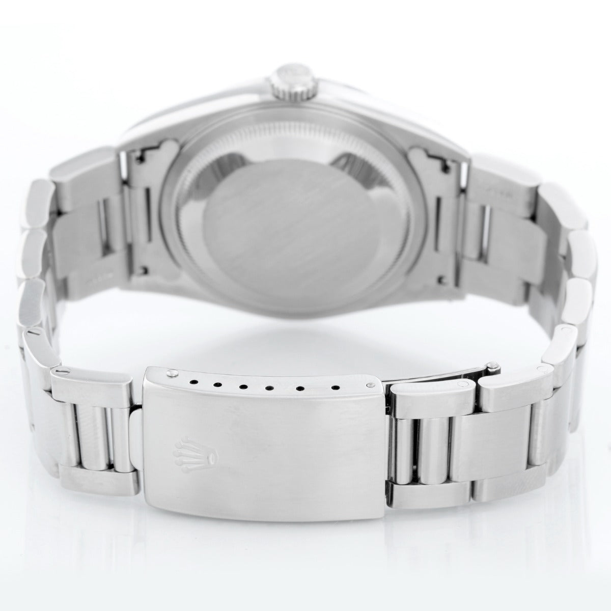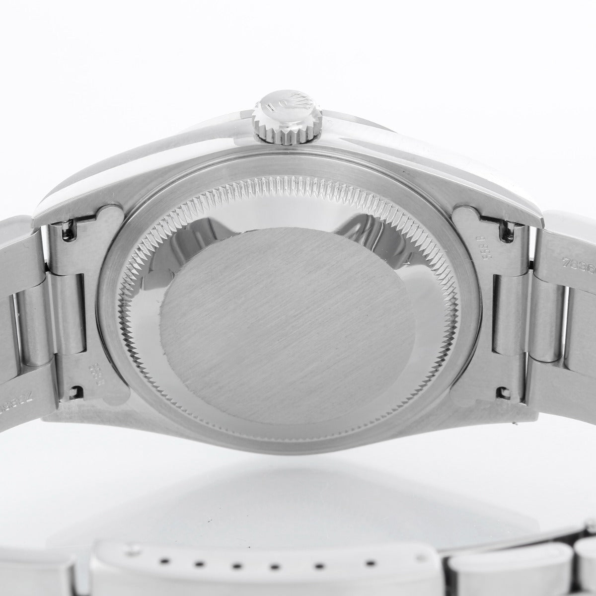 Rolex Datejust Stainless Steel Men's Watch 16200 - Automatic winding, Quickset, sapphire crystal. Stainless steel case with smooth bezel (36mm diameter). Silver dial with Roman numerals. Stainless steel Oyster bracelet. Pre-owned with custom box