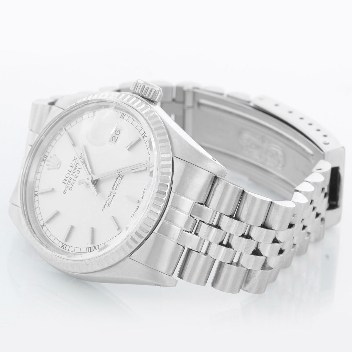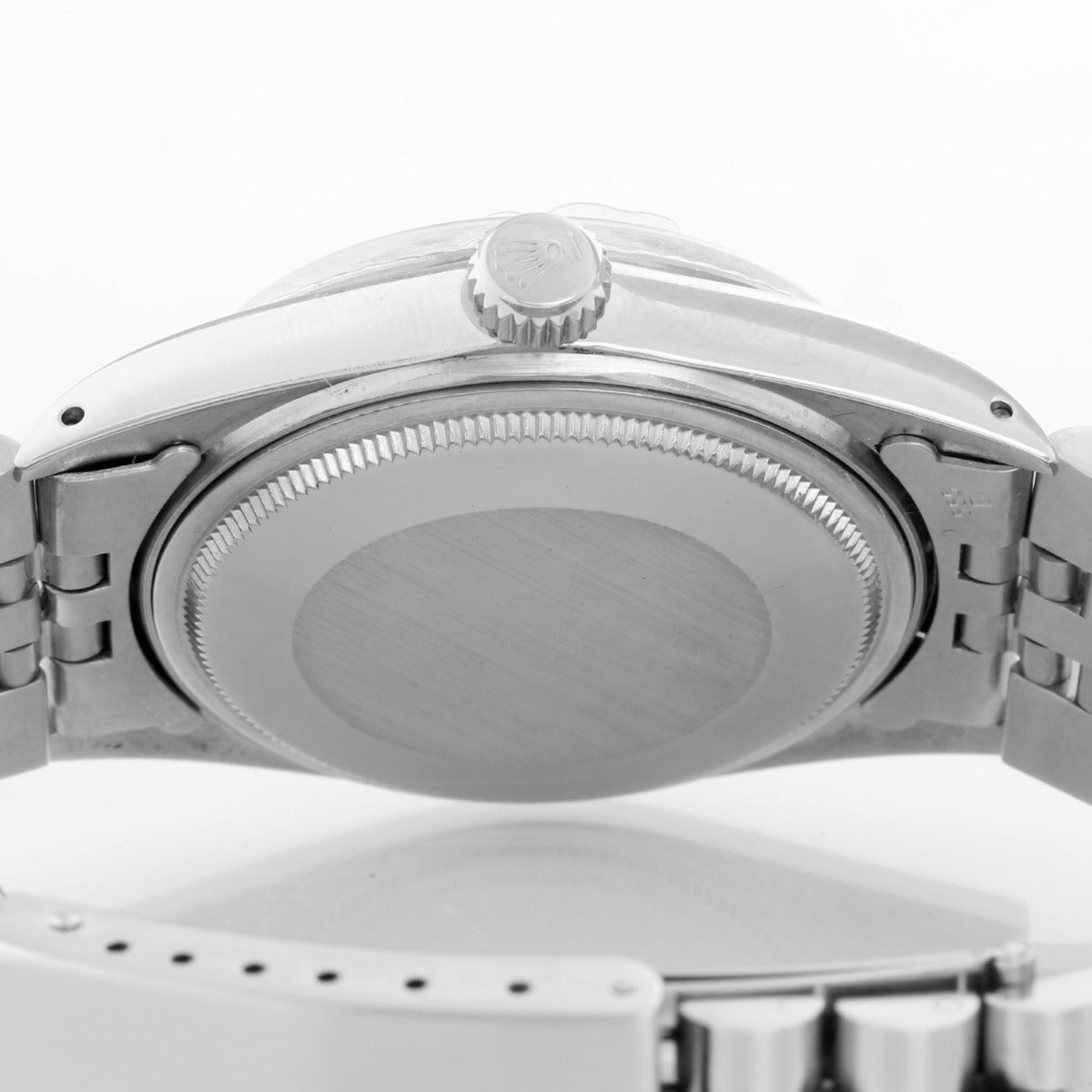 Rolex Datejust Men's Stainless Steel Watch 16014 - Automatic winding, 27 jewels, Quickset, acrylic crystal. Stainless steel with fluted bezel. Silver dial with stick hour markers. Stainless steel jubilee bracelet. Pre-owned with custom box.