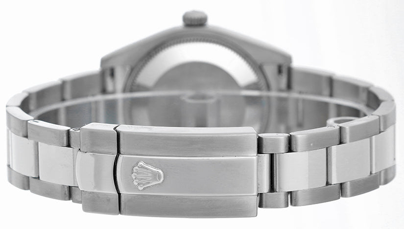Rolex Datejust Midsize Men's/Ladies Steel Watch 178274 - Automatic winding; 31 jewel; sapphire crystal. Stainless steel case with 18k white gold fluted bezel (31mm diameter). Factory black diamond dial. Stainless steel Oyster bracelet. Pre-owned with custom box