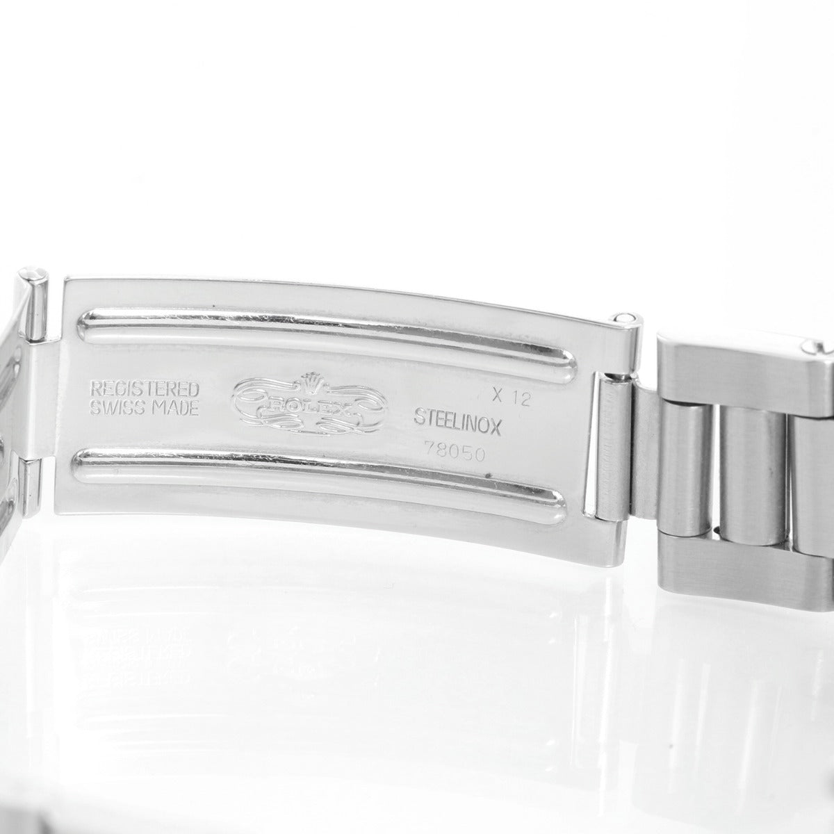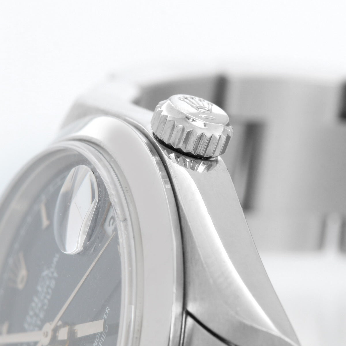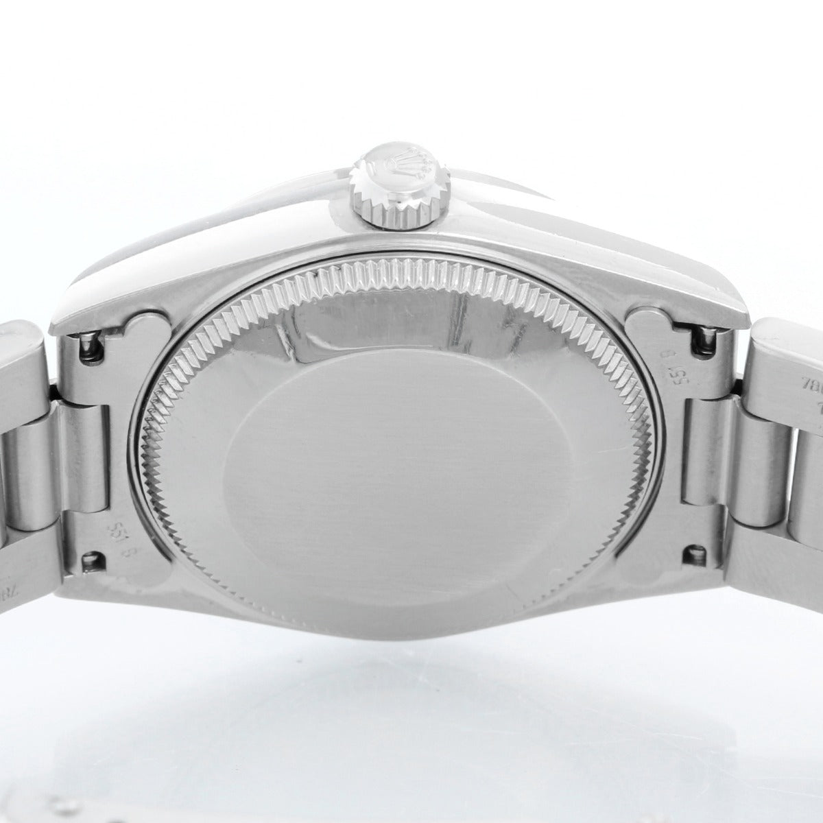 Rolex Stainless Steel Datejust Midsize Watch 78240 - Automatic winding. Stainless steel case (31mm) with smooth bezel. Blue dial with Roman numerals. Stainless steel Oyster bracelet; fits up to a 6 3/4 inch wrist . Pre-owned with Rolex box and papers