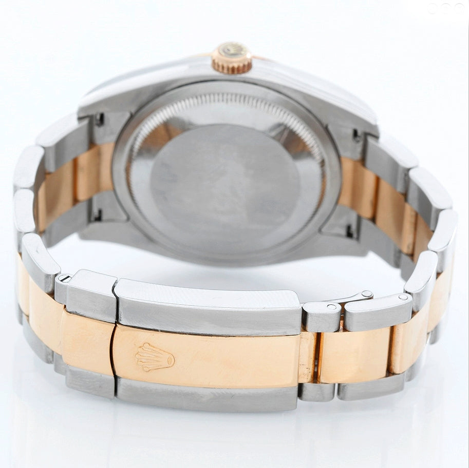 Rolex Datejust Steel & Gold 2-Tone Men's Watch 116233 - Automatic winding, 31 jewels, Quickset, sapphire crystal. Stainless steel case with 18k yellow gold fluted bezel (36mm diameter). Black dial with gold and luminous style markers. Stainless steel and 18k yellow gold Oyster bracelet. Pre-owned with custom box