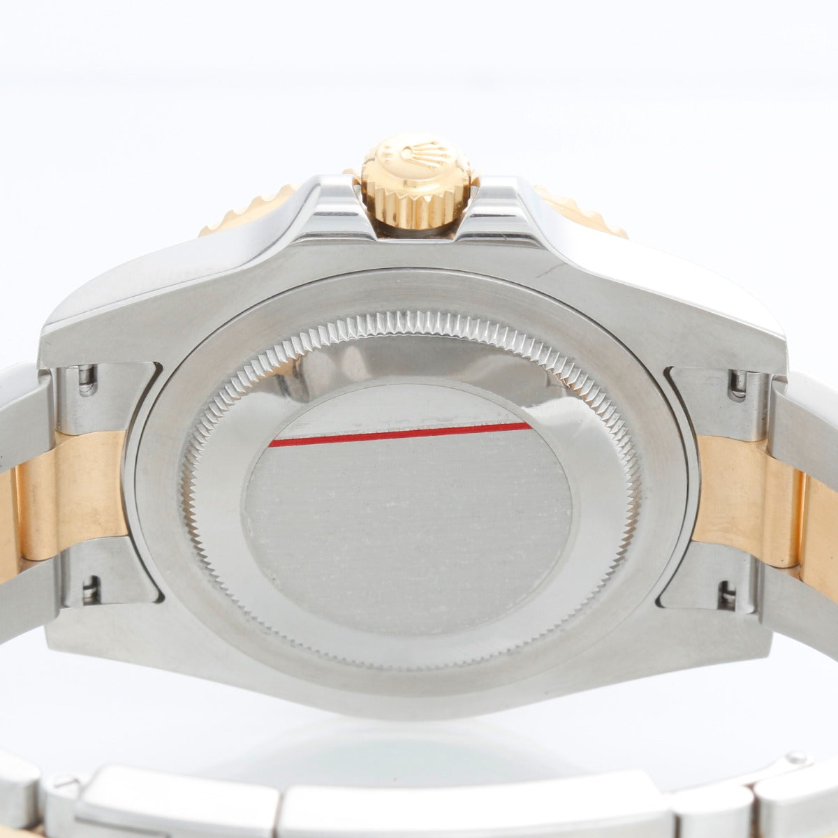 Rolex GMT - Master II 2-Tone Men's Watch 116713 - Automatic winding, 31 jewels, Quickset, sapphire crystal. Stainless steel case with 18k yellow gold bezel (40mm diameter). Black dial with luminous style markers. Stainless steel & 18k yellow gold Oyster bracelet. Pre-owned with Rolex box and book