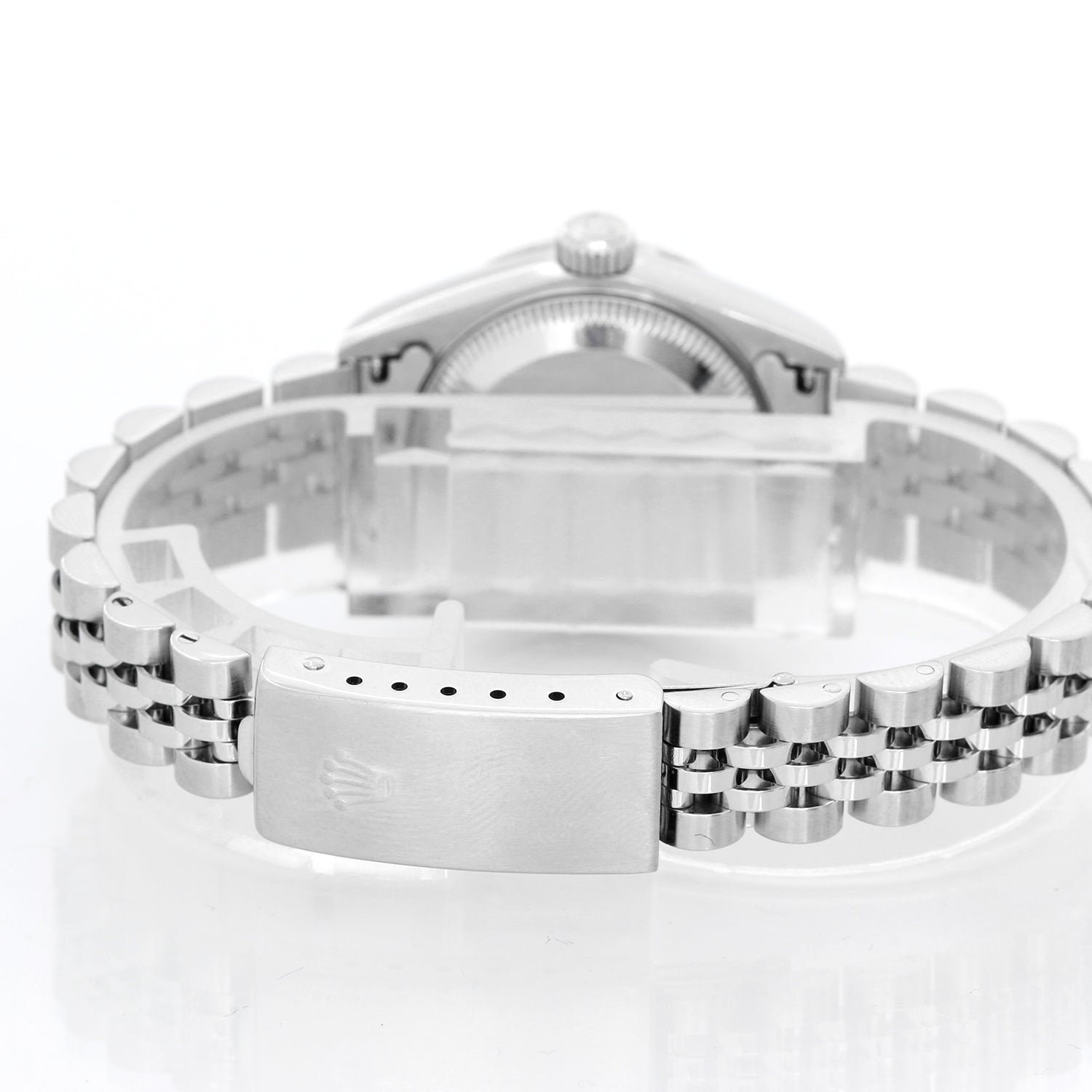 Rolex Ladies Date Stainless Steel Watch 79174 - Automatic winding, 31 jewels, Quickset, sapphire crystal. Stainless steel case with 18k white gold fluted bezel (26mm diameter). Factory decorated Mother of Pearl Roman. Stainless steel Jubilee bracelet. Pre-owned with custom box.