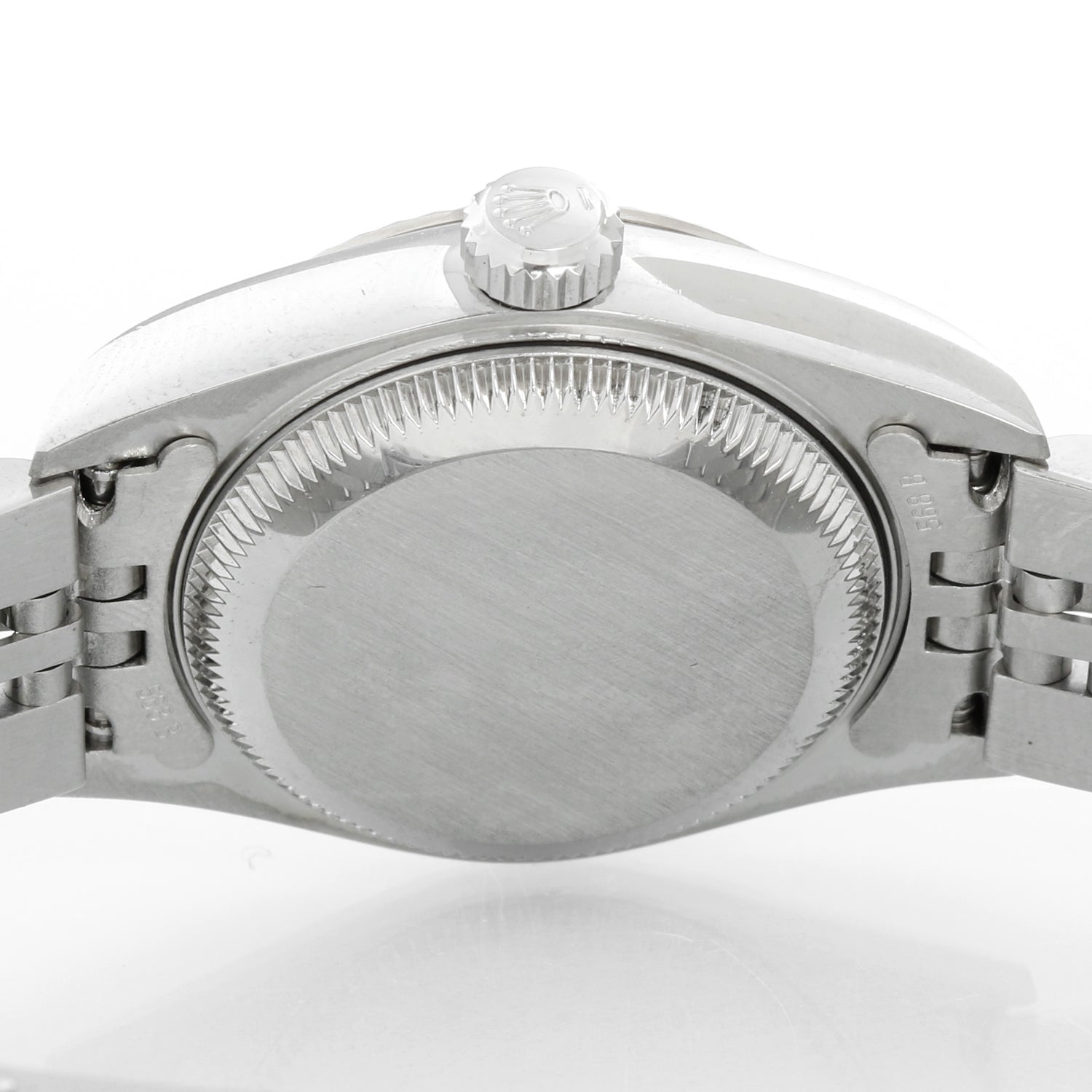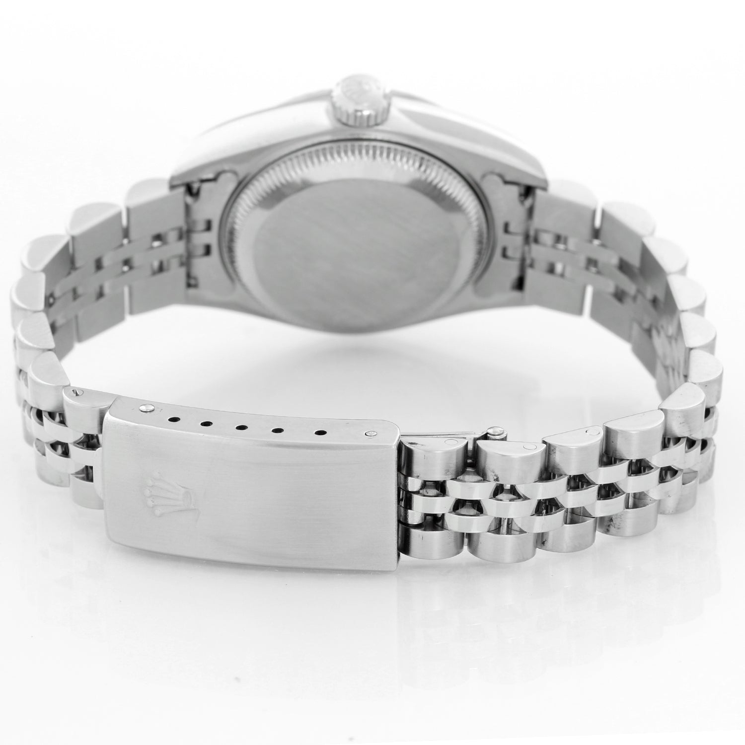 Rolex Ladies Datejust Stainless Steel Watch White Dial 79174 - Automatic winding. Stainless steel case with 18k white gold Fluted bezel (26mm diameter). Factory white diamond dial. Stainless steel Rolex Jubilee bracelet. Pre-owned with custom box and papers.