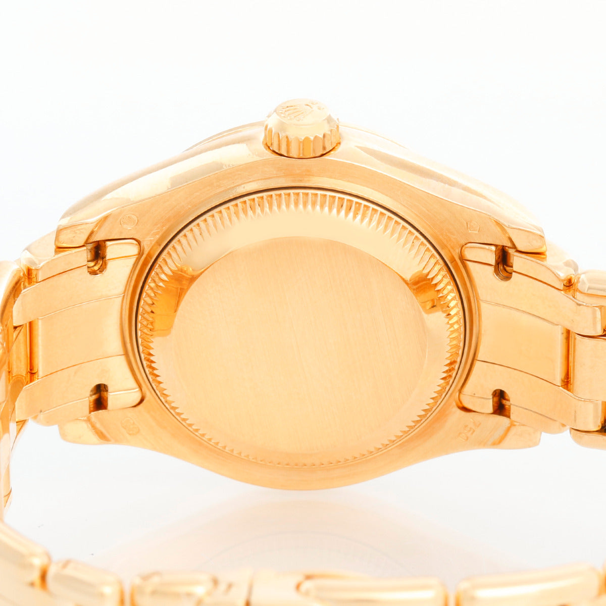 Rolex Lady Datejust Pearlmaster 18k Yellow Gold Ladies Diamond Watch 80318 - Automatic winding, 31 jewels, Quickset, sapphire crystal. 18k yellow gold case with factory 12 diamond bezel (29mm diameter). White Roman numerals Dial. 18k yellow gold Pearlmaster bracelet. Pre-owned with box and books.