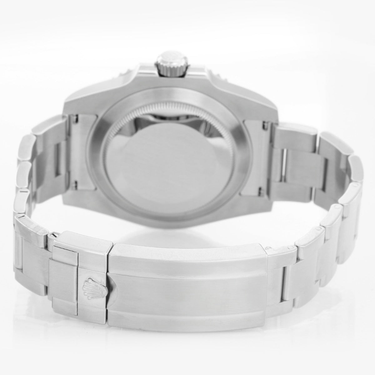 Rolex Submariner Men's Stainless Steel Watch 114060 - Automatic winding, 31 jewels. Stainless steel case with black ceramic bezel insert (40mm diameter). Black dial with luminous style markers. Stainless steel Oyster bracelet with flip-lock clasp. Pre-owned with box and books