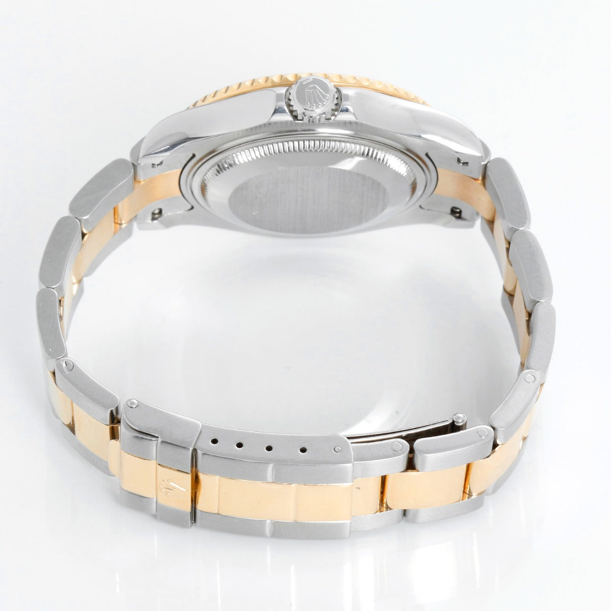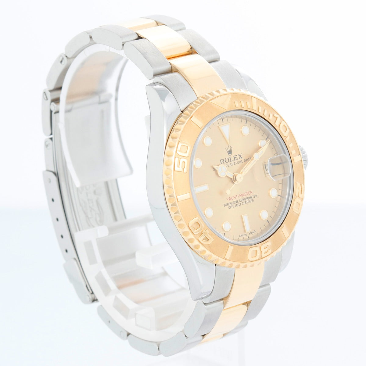 Rolex Midsize Yacht-Master 35mm Steel & Gold Men's or Ladies Watch 168623 - Automatic winding; sapphire crystal. Stainless steel case with 18k yellow gold bezel . Champagne dial. Stainless steel and 18k yellow gold Oyster bracelet with flip-lock clasp. Pre-owned with Rolex Travel Box.