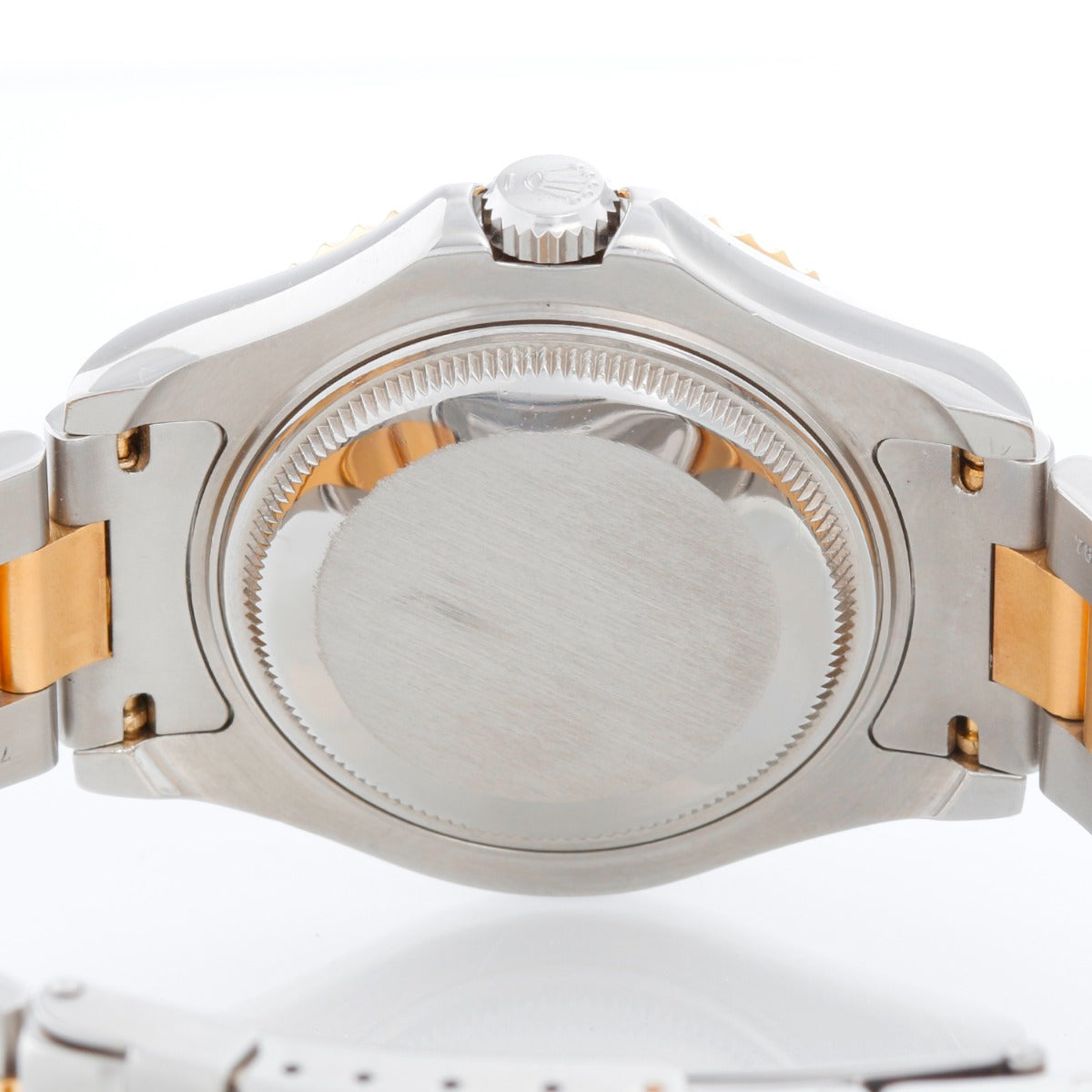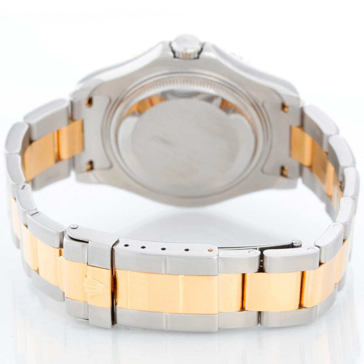 Rolex Midsize Yacht-Master 35mm Steel & Gold Men's or Ladies Watch 168623 - Automatic winding; sapphire crystal. Stainless steel case with 18k yellow gold bezel (35mm diameter). Slate dial with luminous-style hour markers. Stainless steel and 18k yellow gold Oyster bracelet with flip-lock clasp. Pre-owned with Rolex box and books.