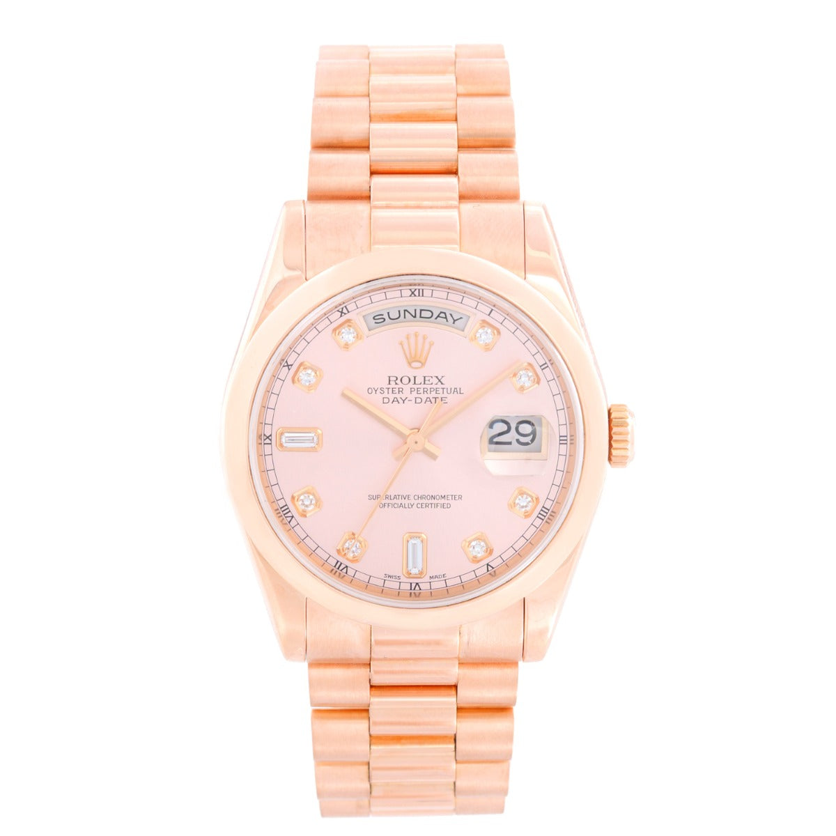 • Rolex President Day-Date Men's 18k Rose Gold Diamond Watch 118205