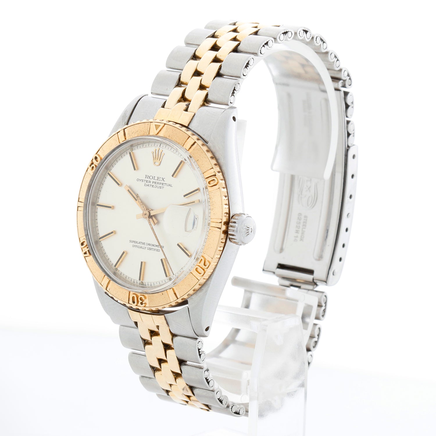 Vintage Rolex Thunderbird Turnograph Men's Watch 1625 - Automatic winding; acrylic crystal. Stainless steel case and yellow gold bezel ( 36 mm ). Silver dial with stick markers. Stainless steel and Yellow Gold Jubilee bracelet . Pre-owned with custom box