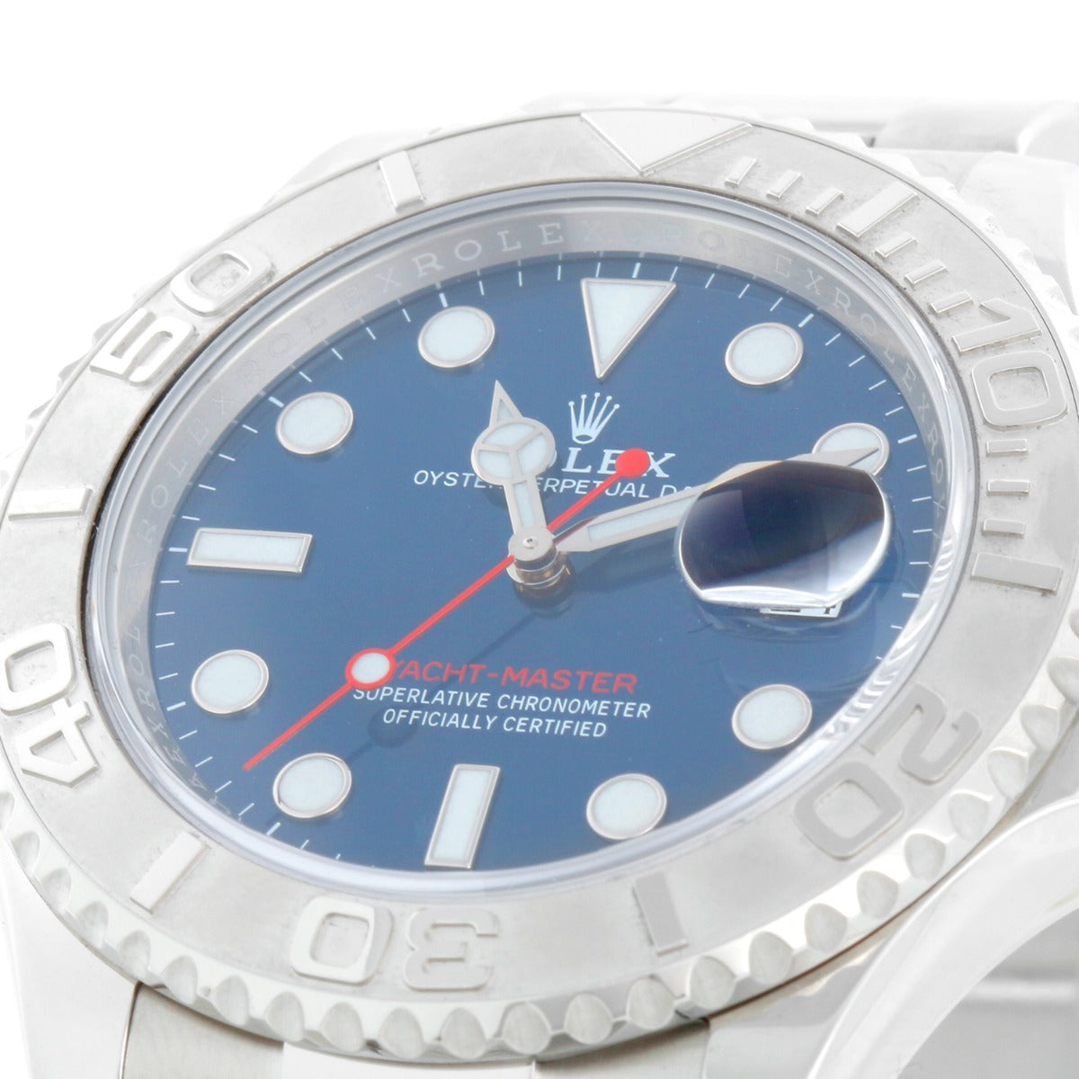 Rolex Yacht-Master Men's Stainless Steel Watch 126622 - Automatic winding, Caliber 3235 movement, Quickset, sapphire crystal. Stainless steel case with platinum bezel (40mm diameter). Blue dial with luminous markers. Stainless steel Oyster bracelet with updated glide-lock clasp. Pre-owned with Rolex box and books.