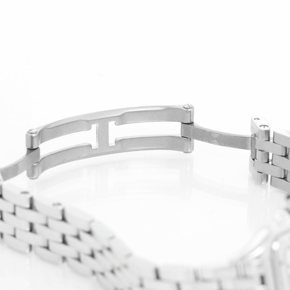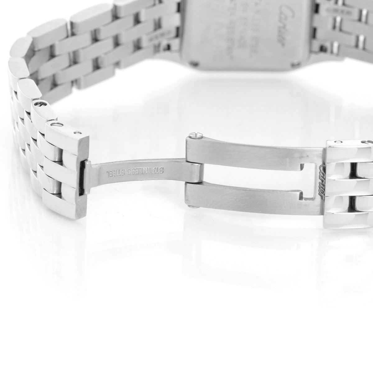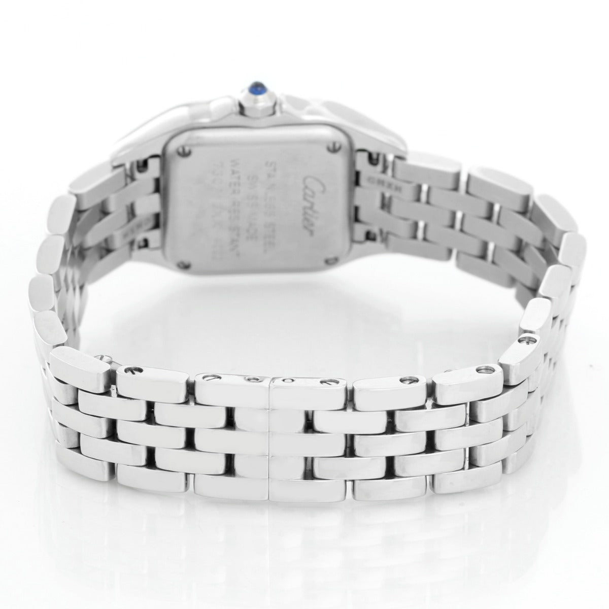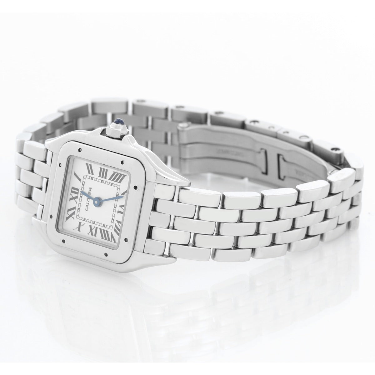 Cartier Ladies Stainless Steel Panthere Watch WSPN0006 4022 - Quartz. Stainless steel case (23mm x 30mm). silver colored dial with black Roman numerals. Stainless steel Panthere bracelet; will fit a 6 1/4 inch wrist . Pre-owned with custom box. Current Cartier model.