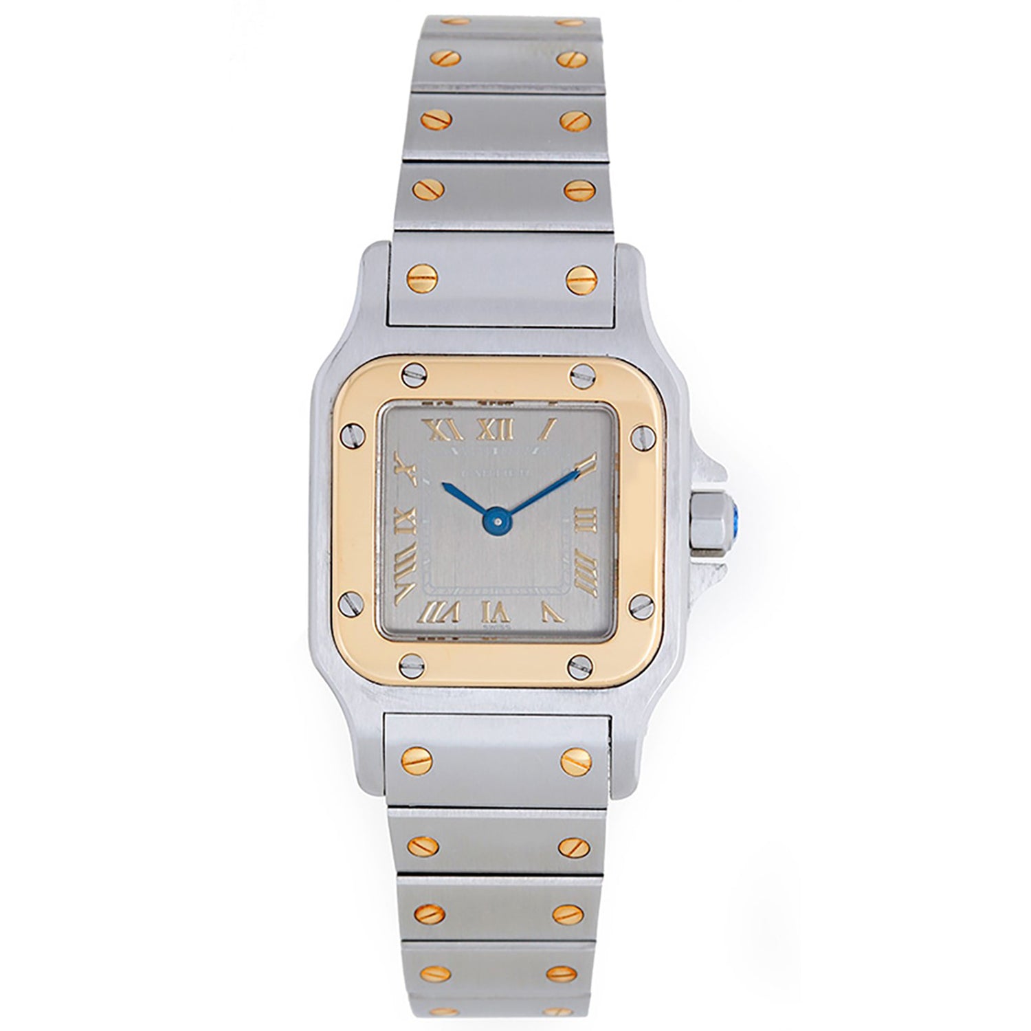 Cartier Santos Galbee Steel & Gold Ladies Watch Silver Roman Dial
