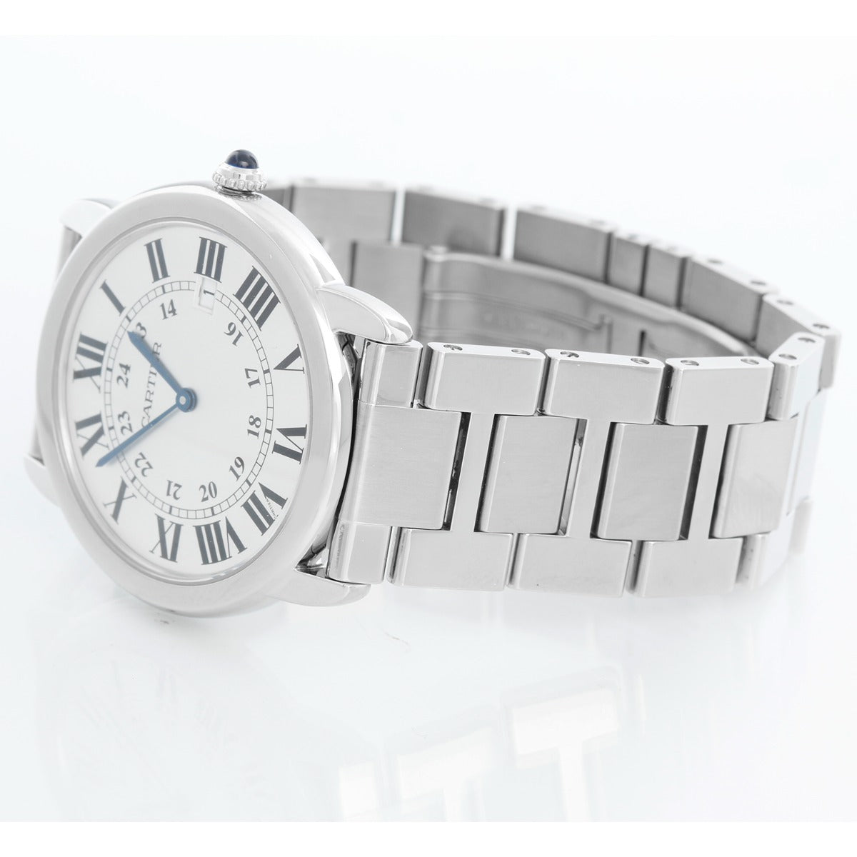 Cartier Solo Ronde Men's/Ladies 36mm Stainless Steel Quartz Watch W6701005 - Quartz winding. Stainless steel case (36mm diameter). Silver dial with black Roman numerals. Stainless steel Cartier bracelet. Pre-owned with Cartier box and papers