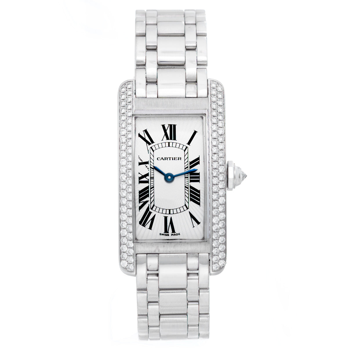 • Cartier Tank Americaine (or American) Ladies White Gold Diamond Watch WB7018L1 2489