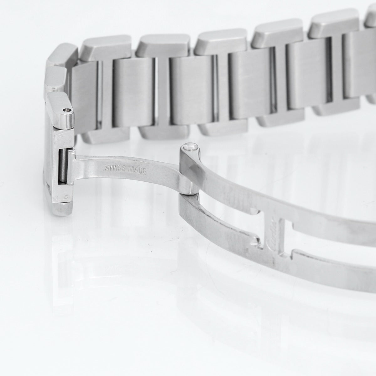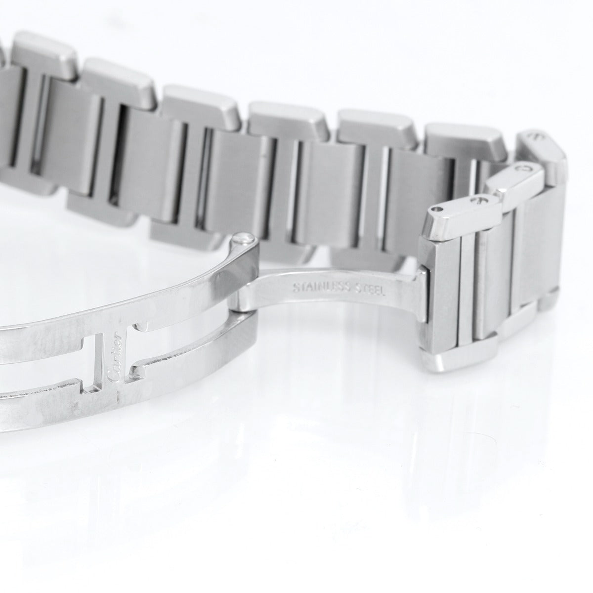 Cartier Tank Francaise Stainless Steel Ladies Watch W51008Q3 2384 - Quartz. Stainless Steel (20 x 25mm ). White dial with black Roman numerals. Stainless Steel Cartier Tank Francaise bracelet with deployant clasp; will fit a 6 1/4 inch wrist . Pre-owned with custom box .