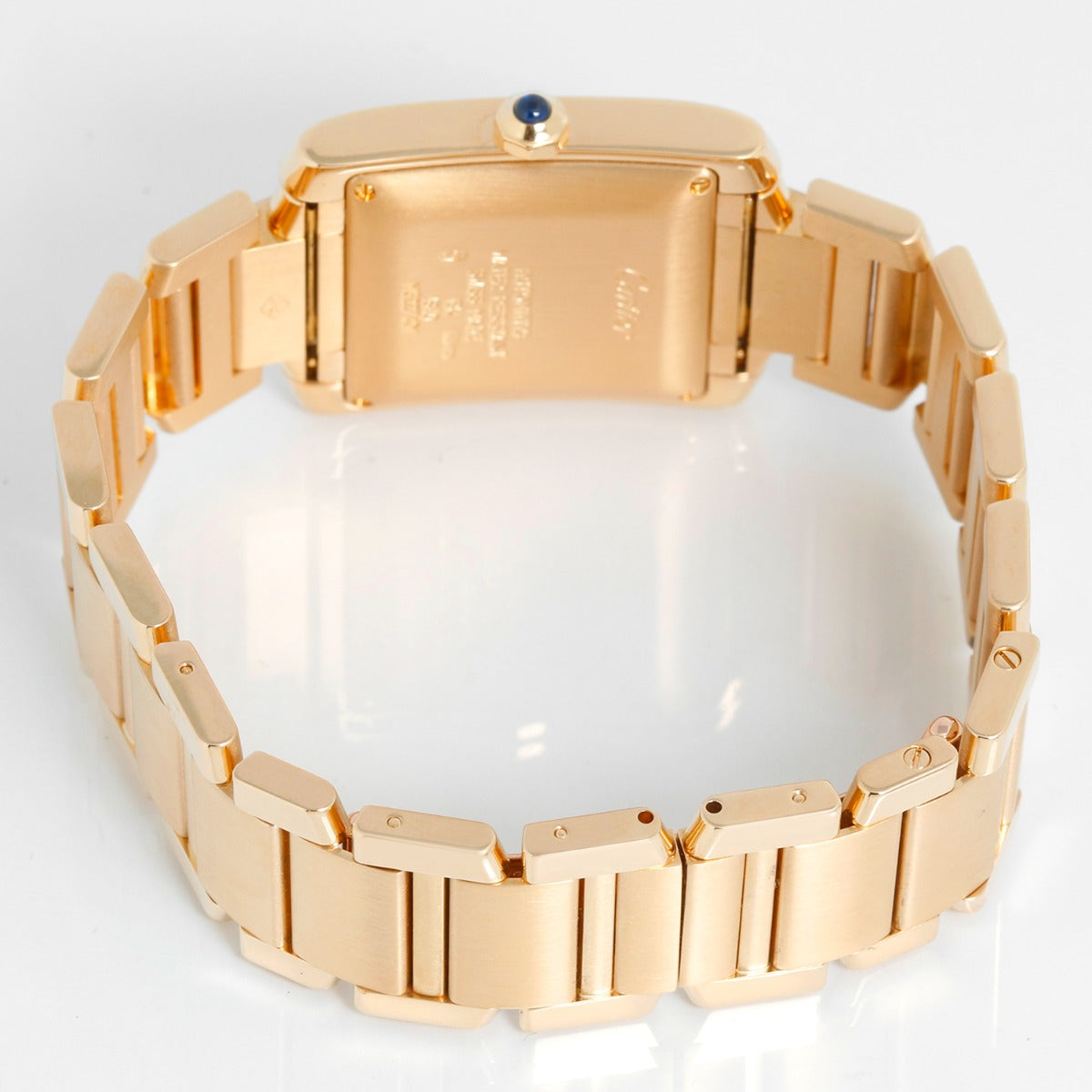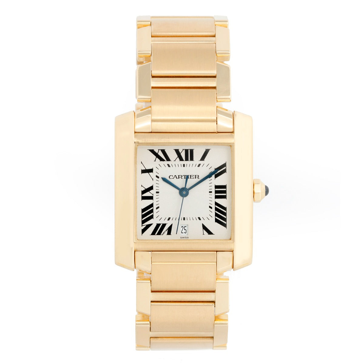 Cartier Tank Francaise 18k Yellow Gold Men's Watch W5000156 1840 - Automatic winding; date. 18k yellow gold case (28 x 32mm ). Silver guilloche dial with black Roman numerals. 18K Yellow Gold Bracelet. Pre-owned with Cartier box.