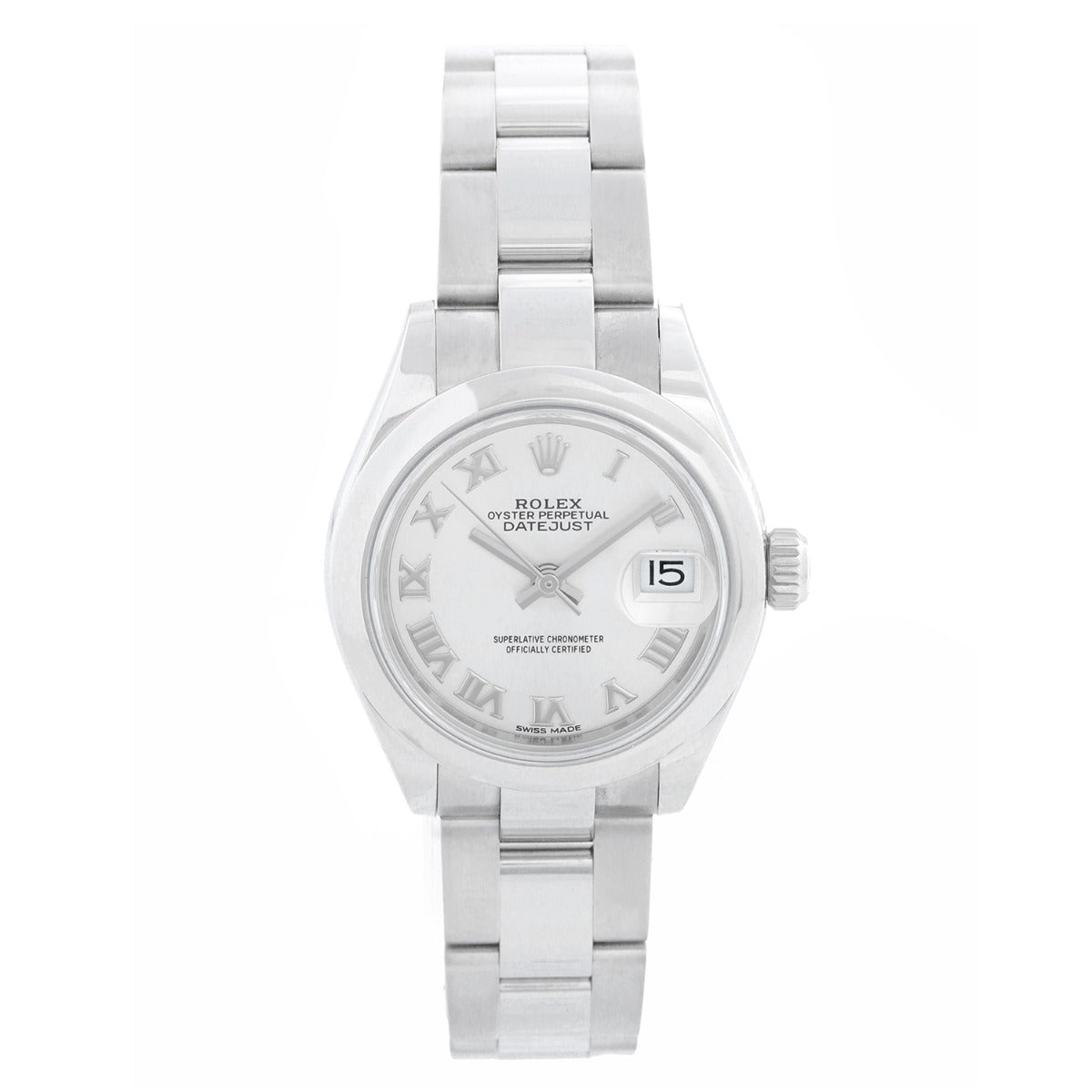 Ladies Rolex Datejust 28mm Stainless Steel 279160 - Automatic winding, 31 jewels, Quickset date, sapphire crystal. Stainless Steel ( 28 mm). Silver dial with Roman numerals . Stainless Steel Oyster bracelet . Pre- owned with custom box