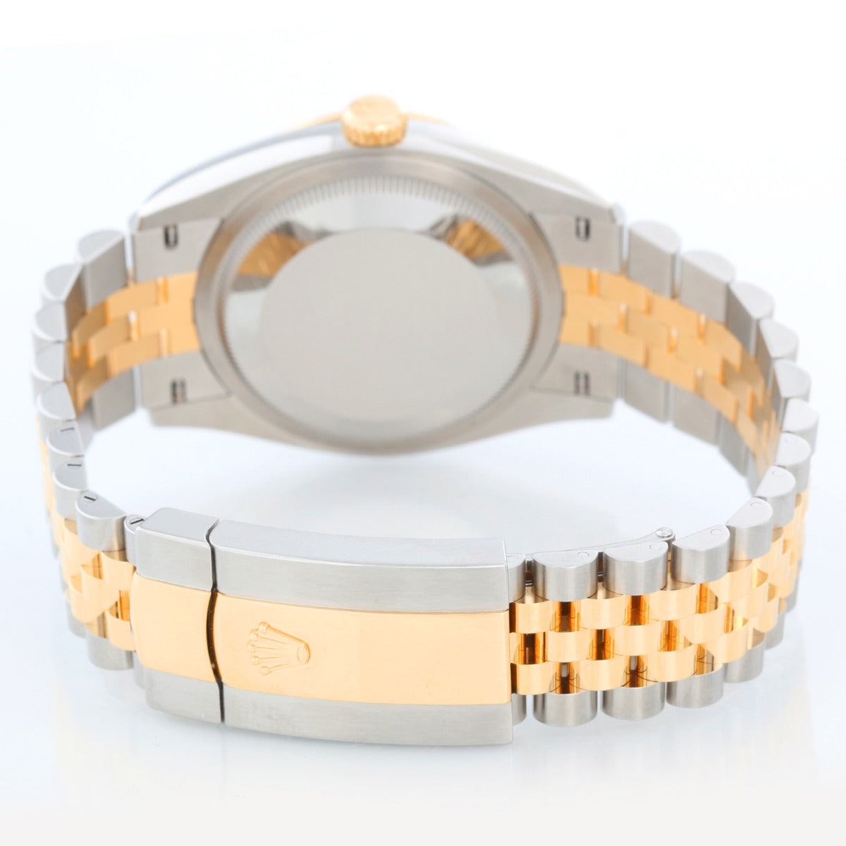 Rolex Datejust Men's 2-Tone Watch 126233 Olive dial - Automatic winding, 31 jewels, Quickset, sapphire crystal. Stainless steel case with 18k yellow gold fluted bezel (36 mm). Olive dial with with set diamonds at 6 and 9 o'clock. Stainless steel and 18k yellow gold Jubilee bracelet. Unused with box and card