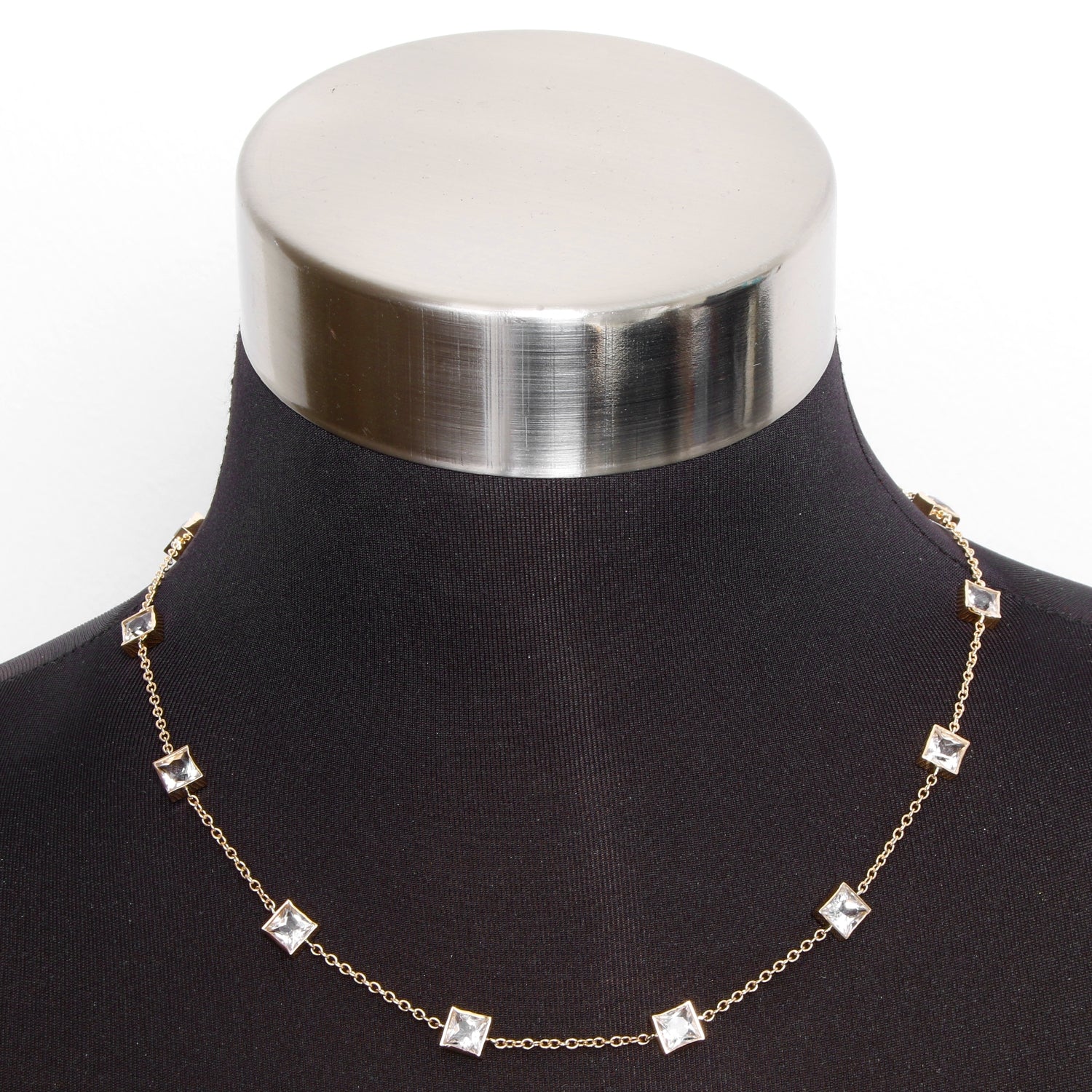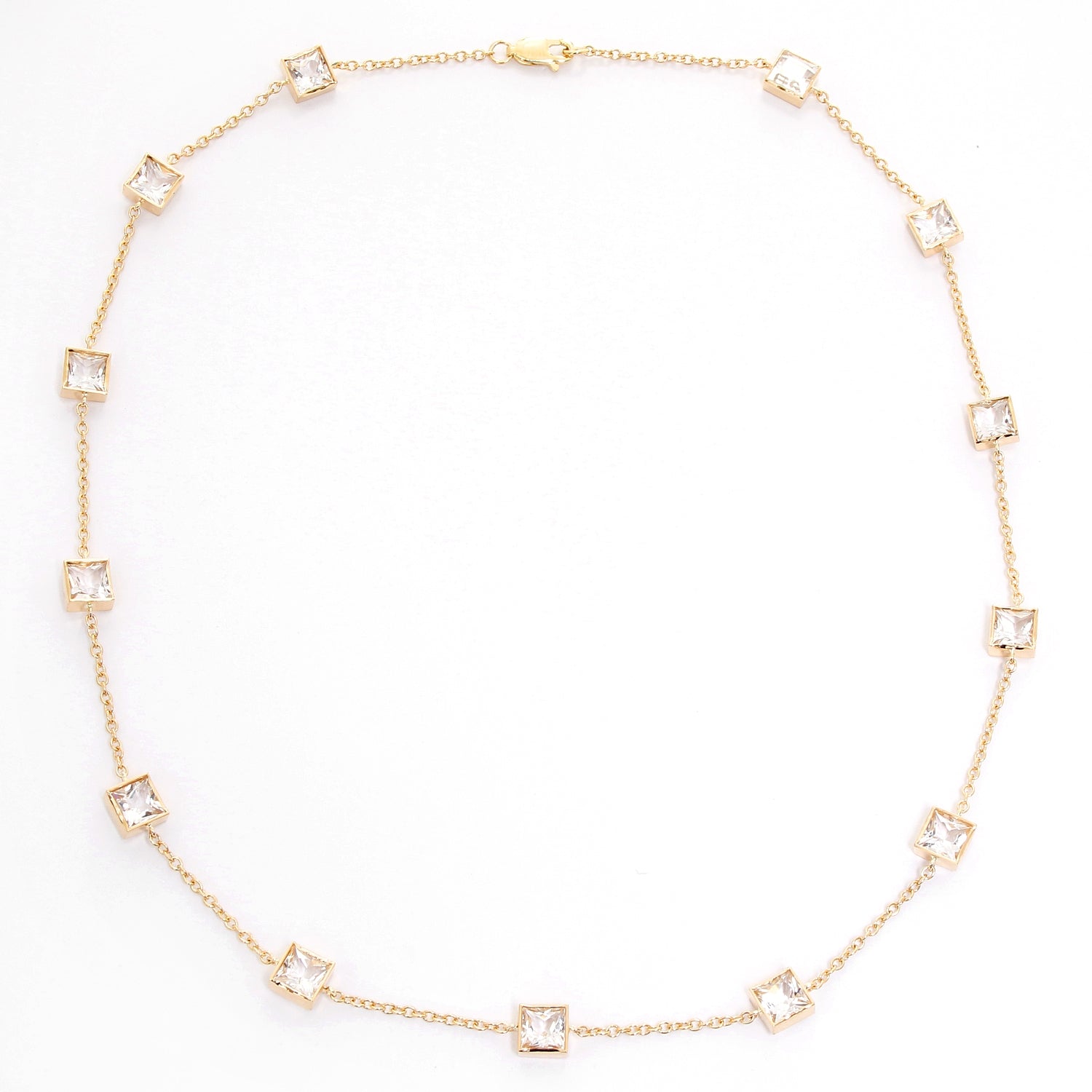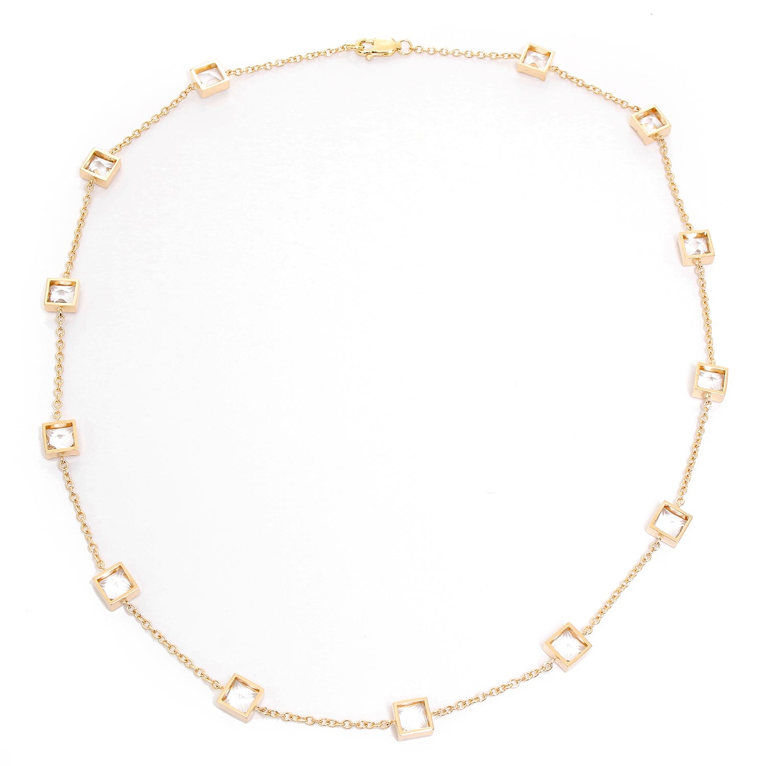 14K Yellow Gold White Topaz Yard Diamond by a Yard Necklace - . 14K Yellow Gold with 13 beautiful White Topaz weighing 10 cts. 18' in length. Total weight 11.4 grams.