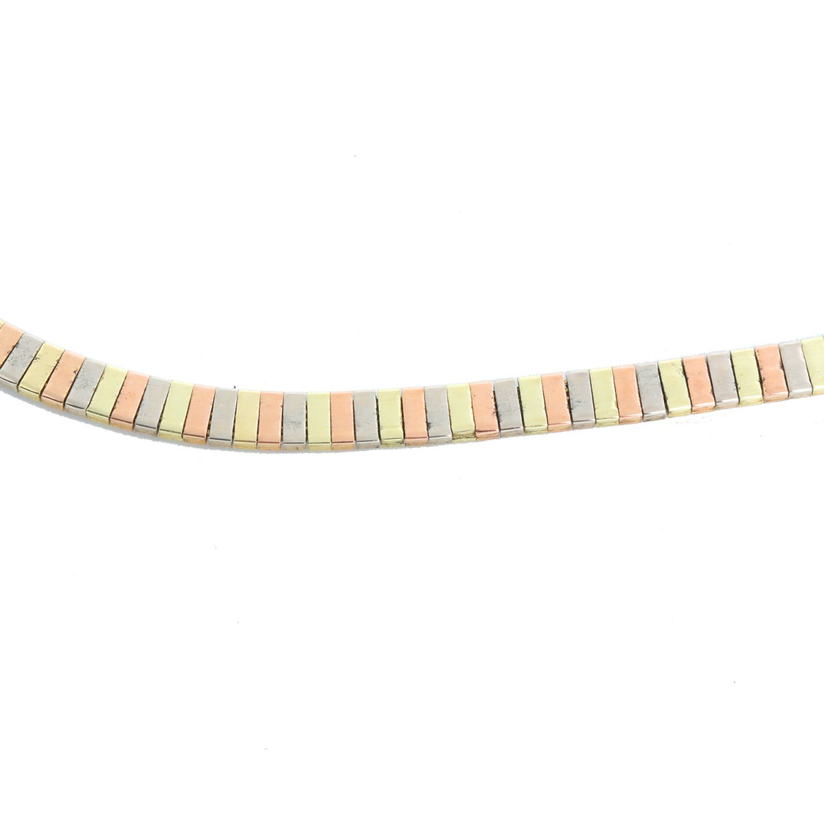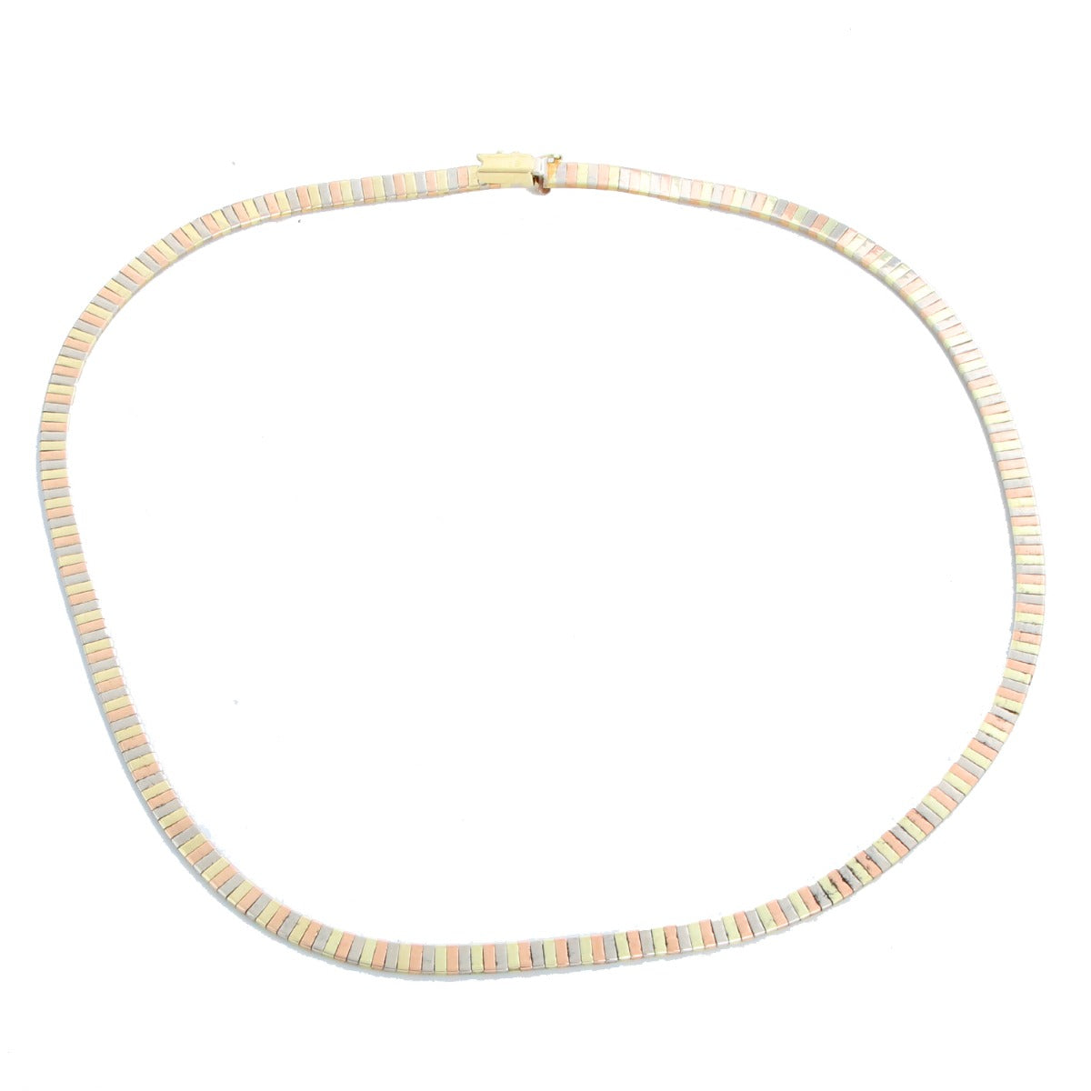 14K Yellow, White Gold and Pink Gold Necklace - 16 inches long. Triple link necklace. .5mm wide. Total weight 23 grams. Pre-owned with pouch.
